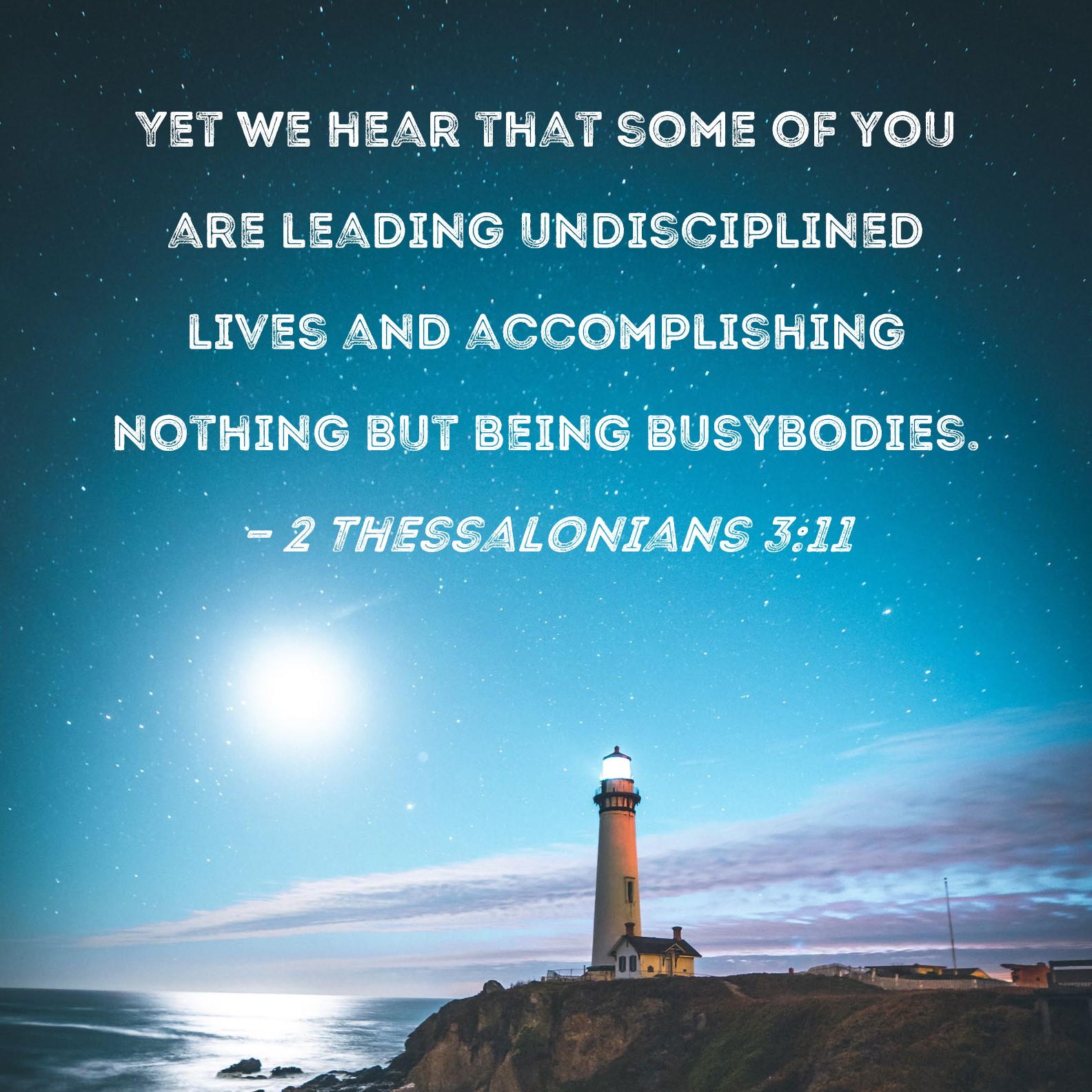 2 Thessalonians 3:11 Yet we hear that some of you are leading undisciplined lives and accomplishing nothing but being busybodies.