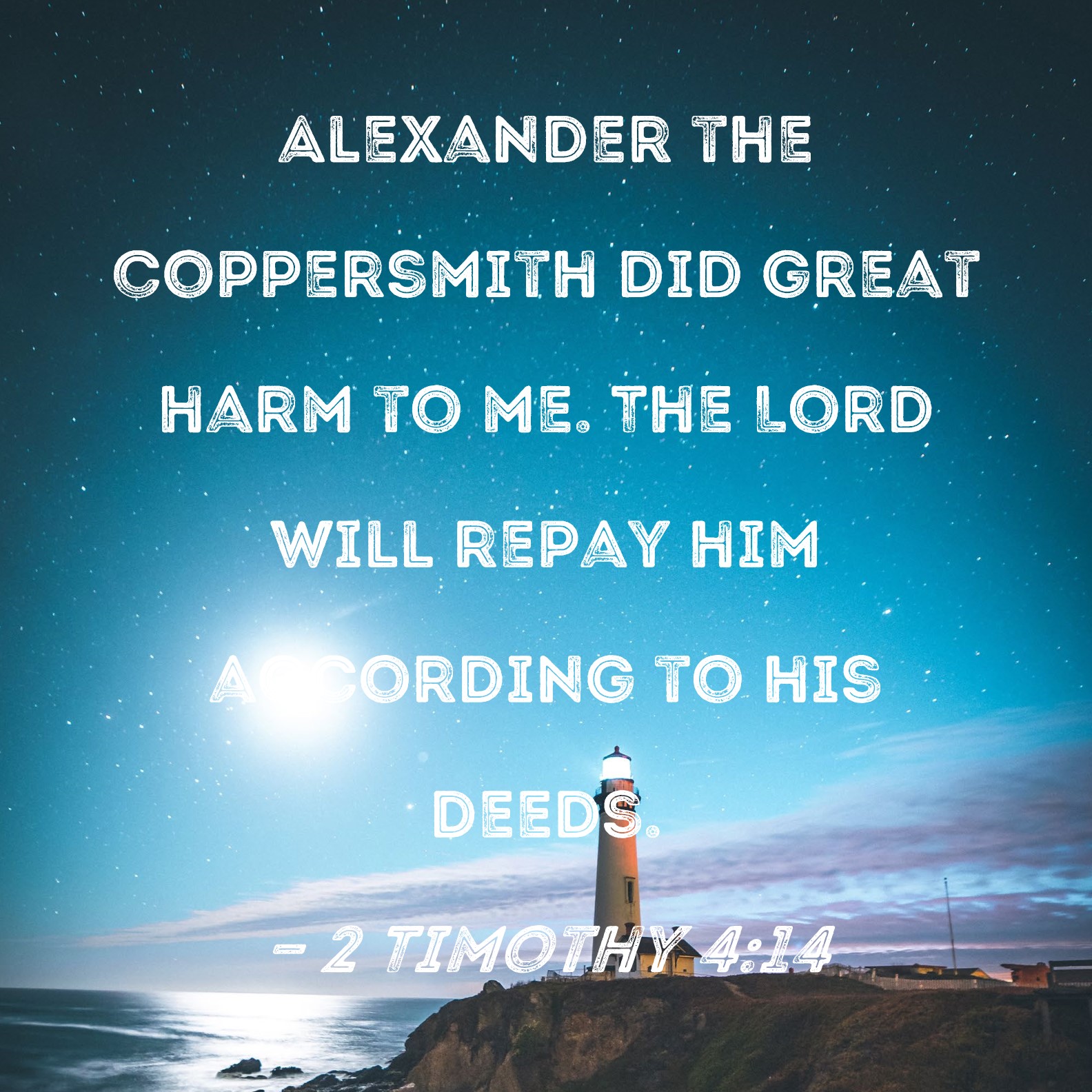 2 Timothy 4:14 Alexander the coppersmith did great harm to me. The Lord will repay him according to his deeds.