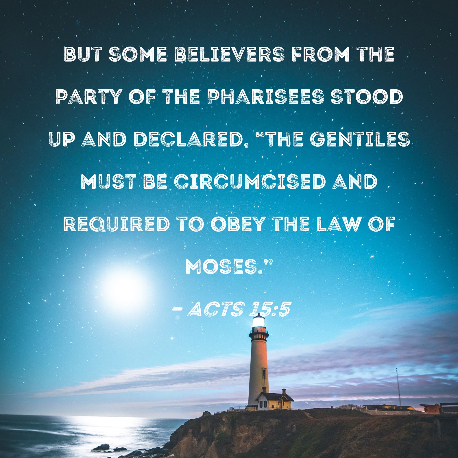 Acts 15:5 But some believers from the party of the Pharisees stood up and declared, "The Gentiles must be circumcised and required to obey the law of Moses."