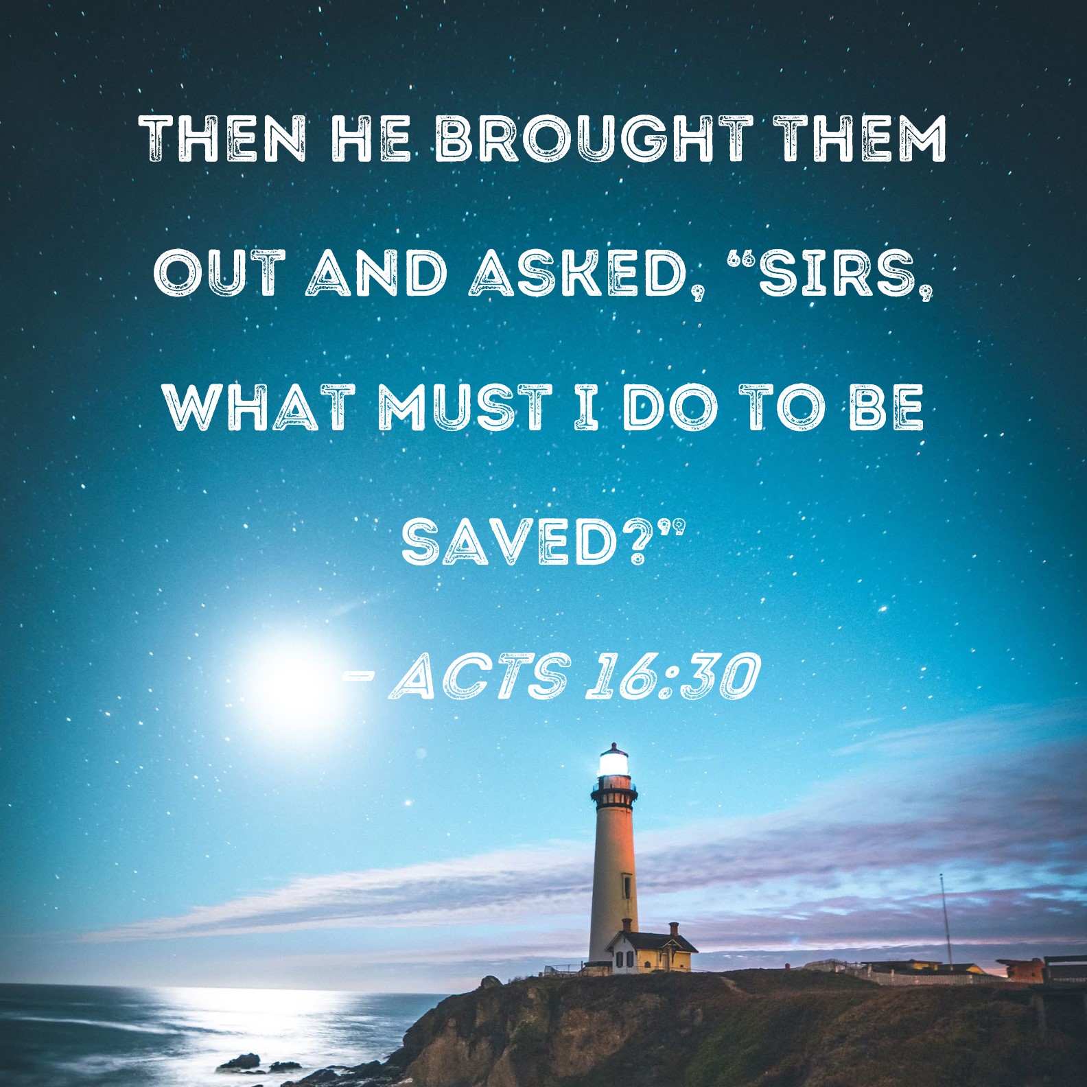 Acts 16:30 Then he brought them out and asked, "Sirs, what must I do to be saved?"