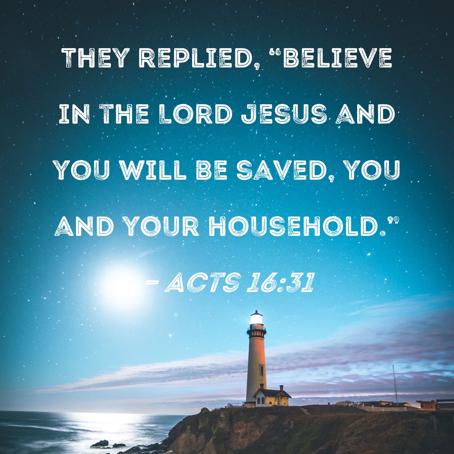Acts 16:31 They replied, "Believe in the Lord Jesus and you will be saved, you and your household."
