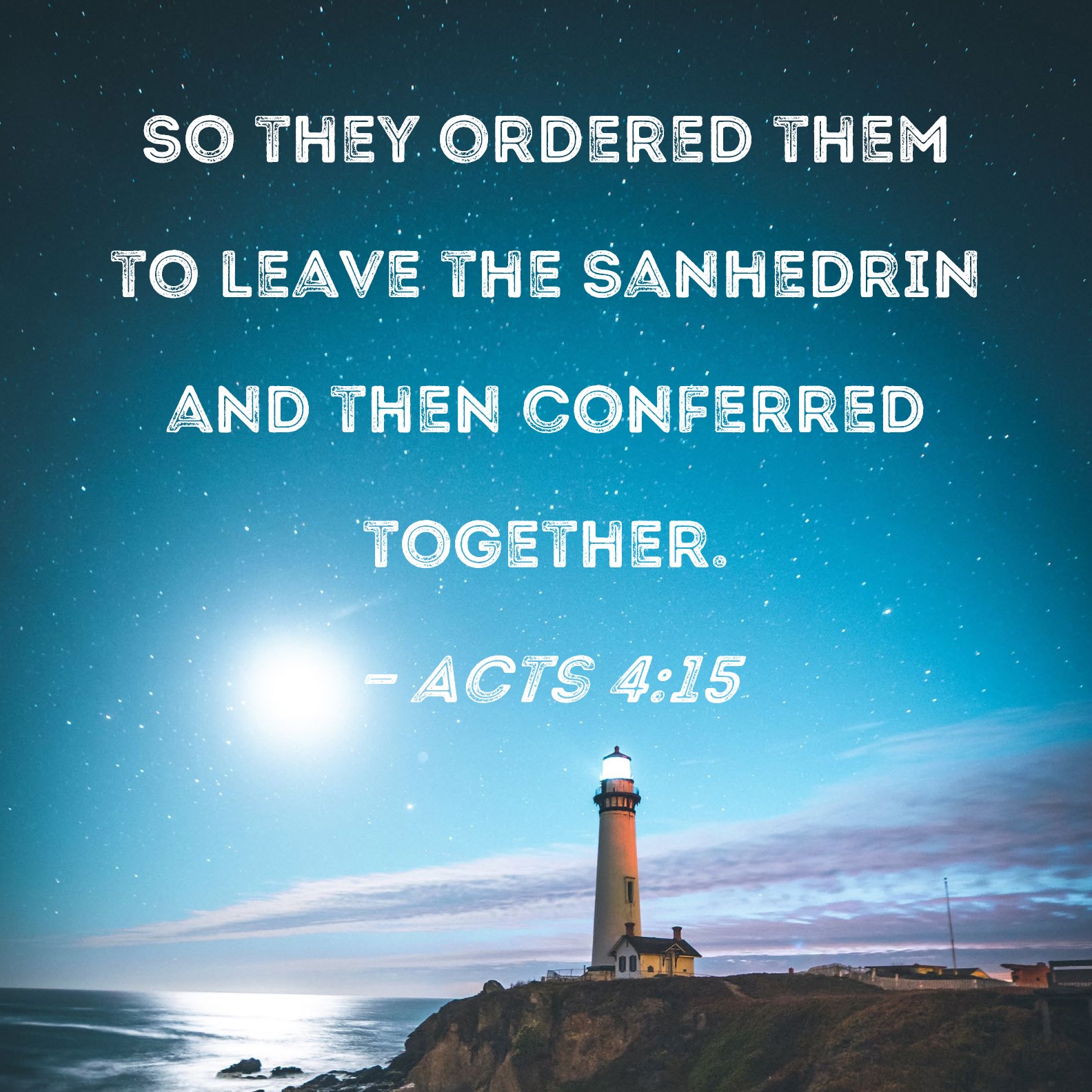 Acts 4:15 So they ordered them to leave the Sanhedrin and then conferred together.