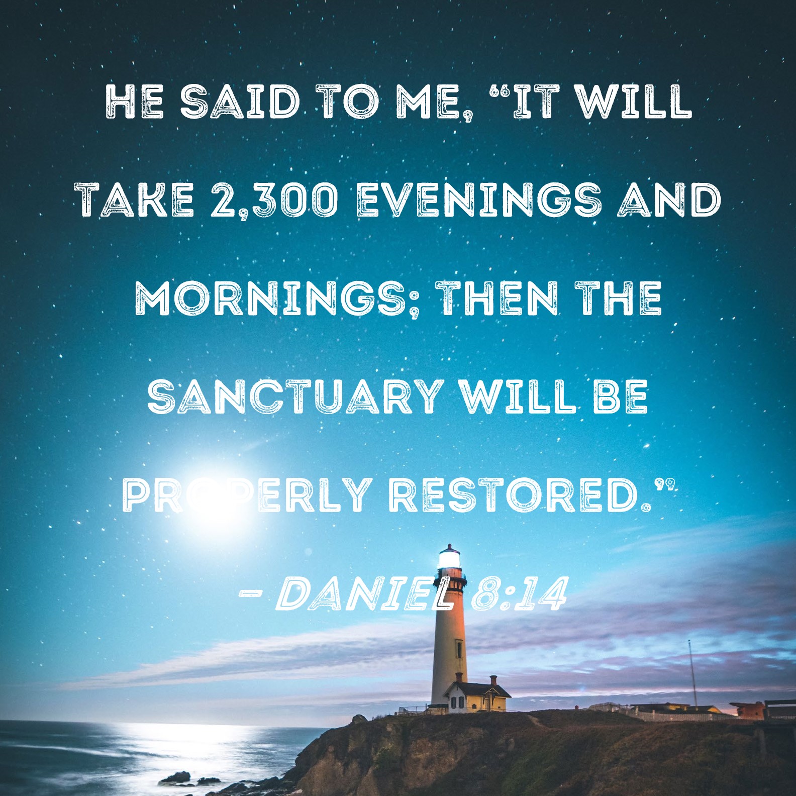Daniel 8:14 He said to me, "It will take 2,300 evenings and mornings; then the sanctuary will be properly restored."