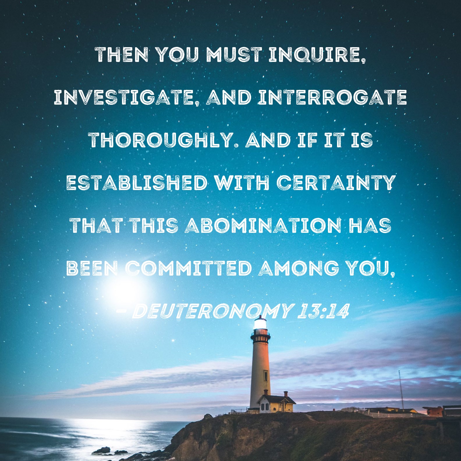 Deuteronomy 13:14 then you must inquire, investigate, and interrogate thoroughly. And if it is established with certainty that this abomination has been committed among you,