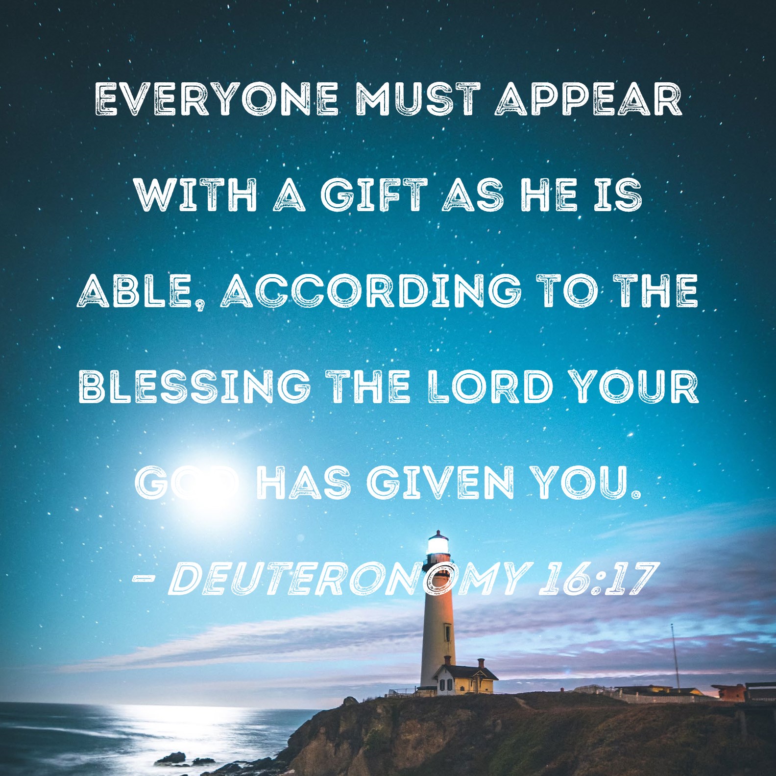 Deuteronomy 16:17 Everyone must appear with a gift as he is able, according to the blessing the LORD your God has given you.