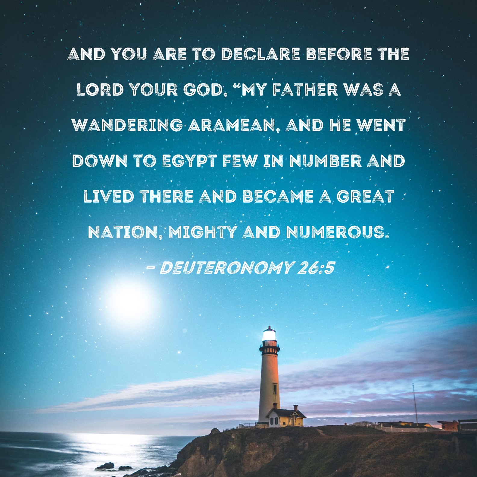 Deuteronomy 26:5 and you are to declare before the LORD your God, "My father was a wandering Aramean, and he went down to Egypt few in number and lived there and became a great nation, mighty and numerous.