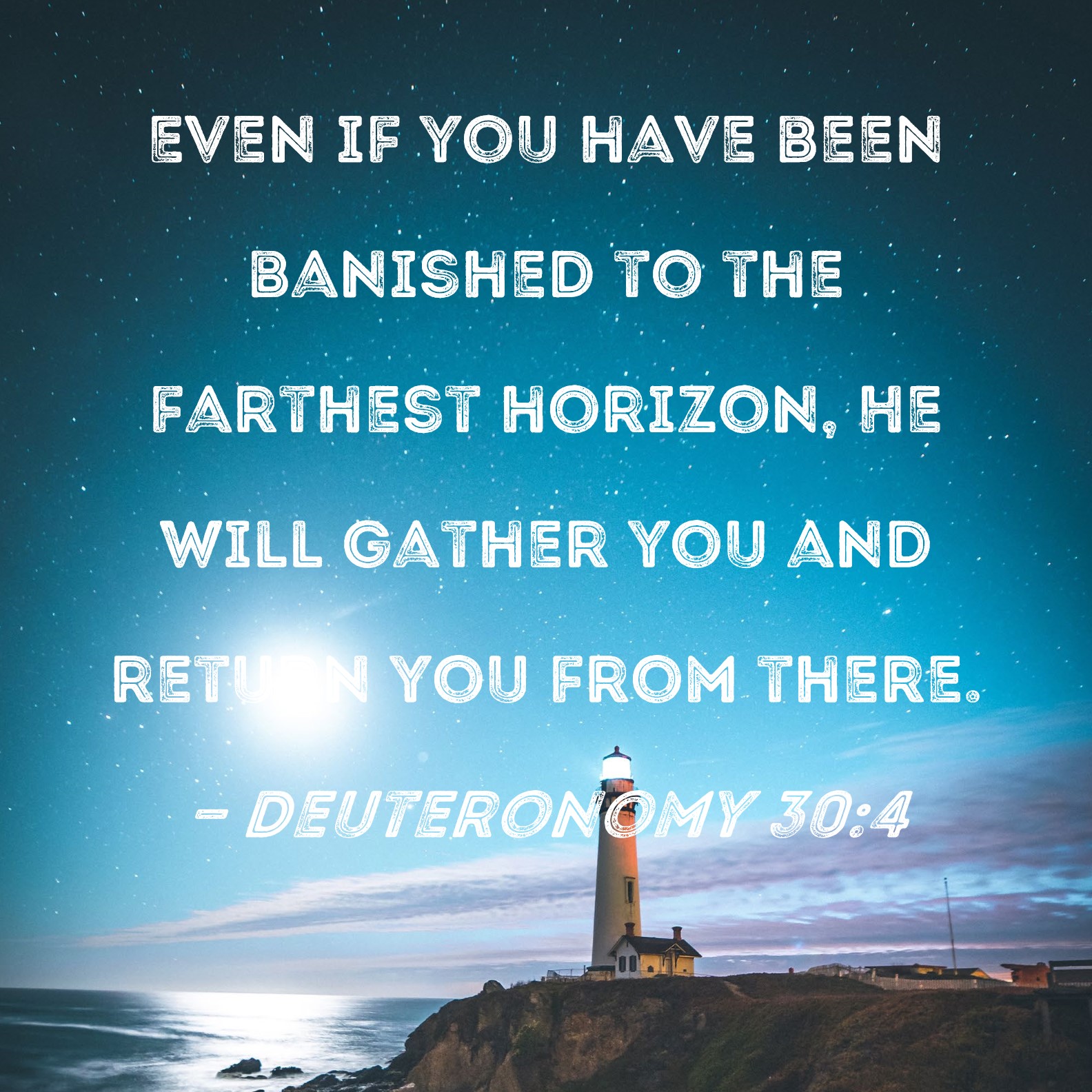 Deuteronomy 30:4 Even if you have been banished to the farthest horizon, He will gather you and return you from there.