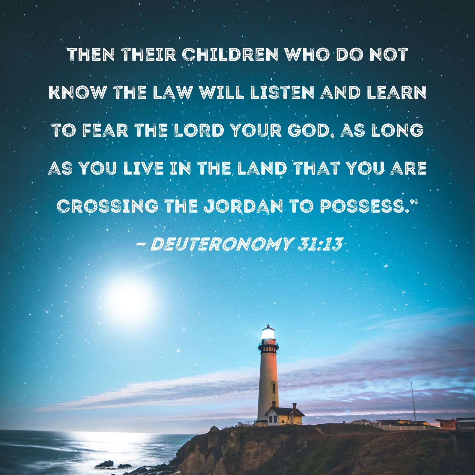 Deuteronomy 31:13 Then their children who do not know the law will listen and learn to fear the LORD your God, as long as you live in the land that you are crossing the Jordan to possess."