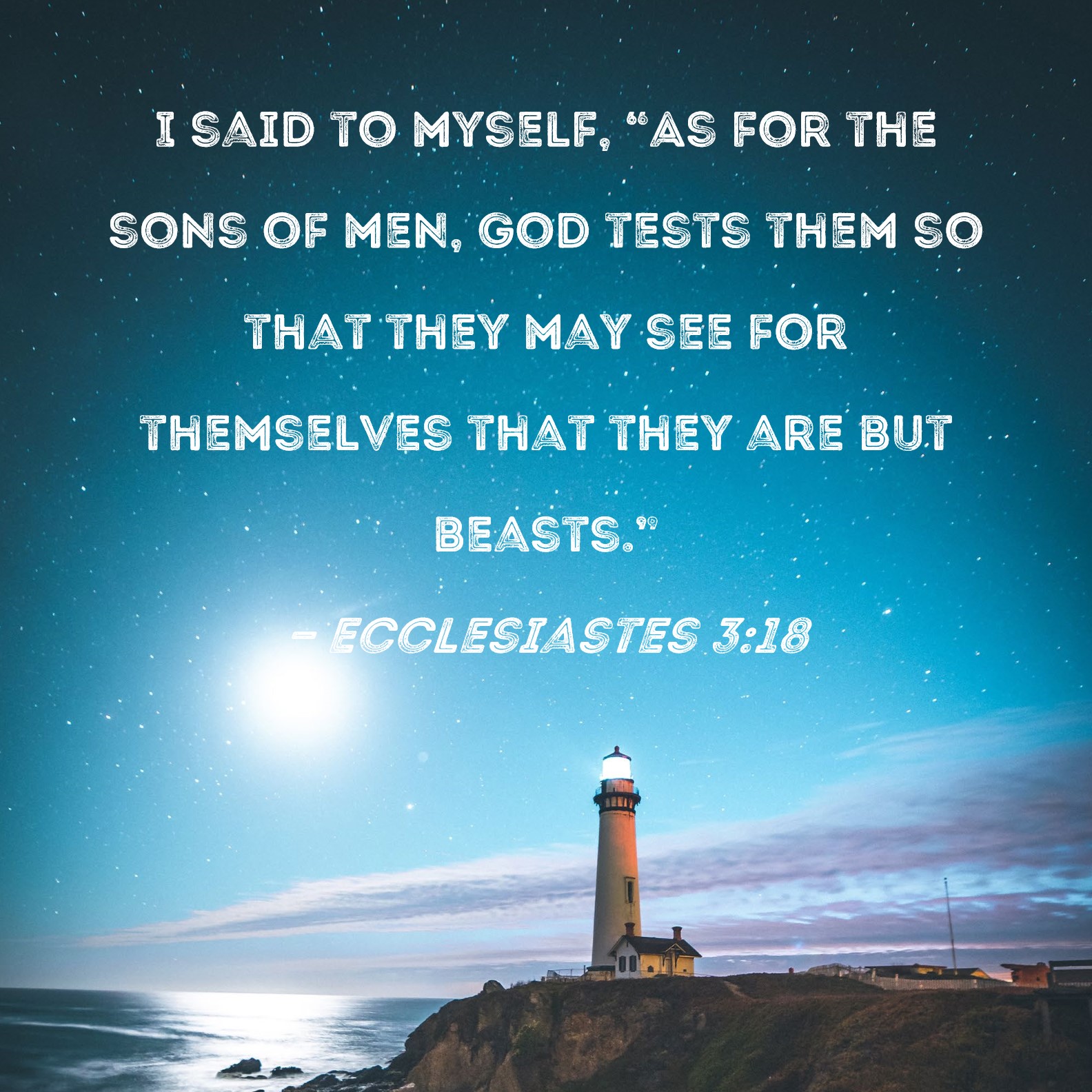 Ecclesiastes 3:18 I said to myself, "As for the sons of men, God tests them so that they may see for themselves that they are but beasts."