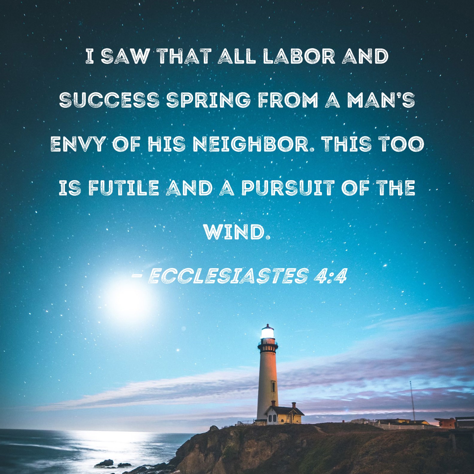 Ecclesiastes 4:4 I saw that all labor and success spring from a man's envy of his neighbor. This too is futile and a pursuit of the wind.