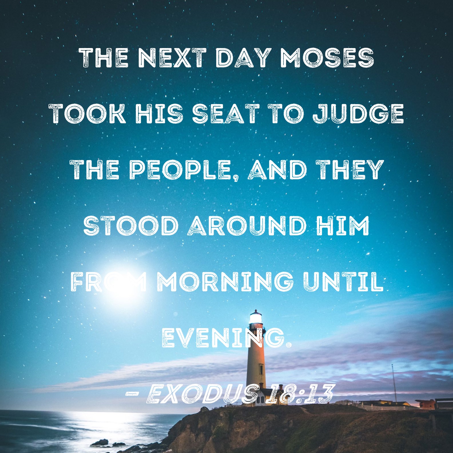 Exodus 18:13 The next day Moses took his seat to judge the people, and they stood around him from morning until evening.