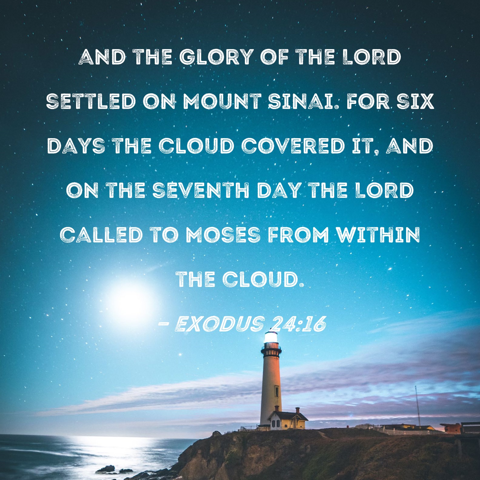 Exodus 24:16 and the glory of the LORD settled on Mount Sinai. For six days the cloud covered it, and on the seventh day the LORD called to Moses from within the cloud.