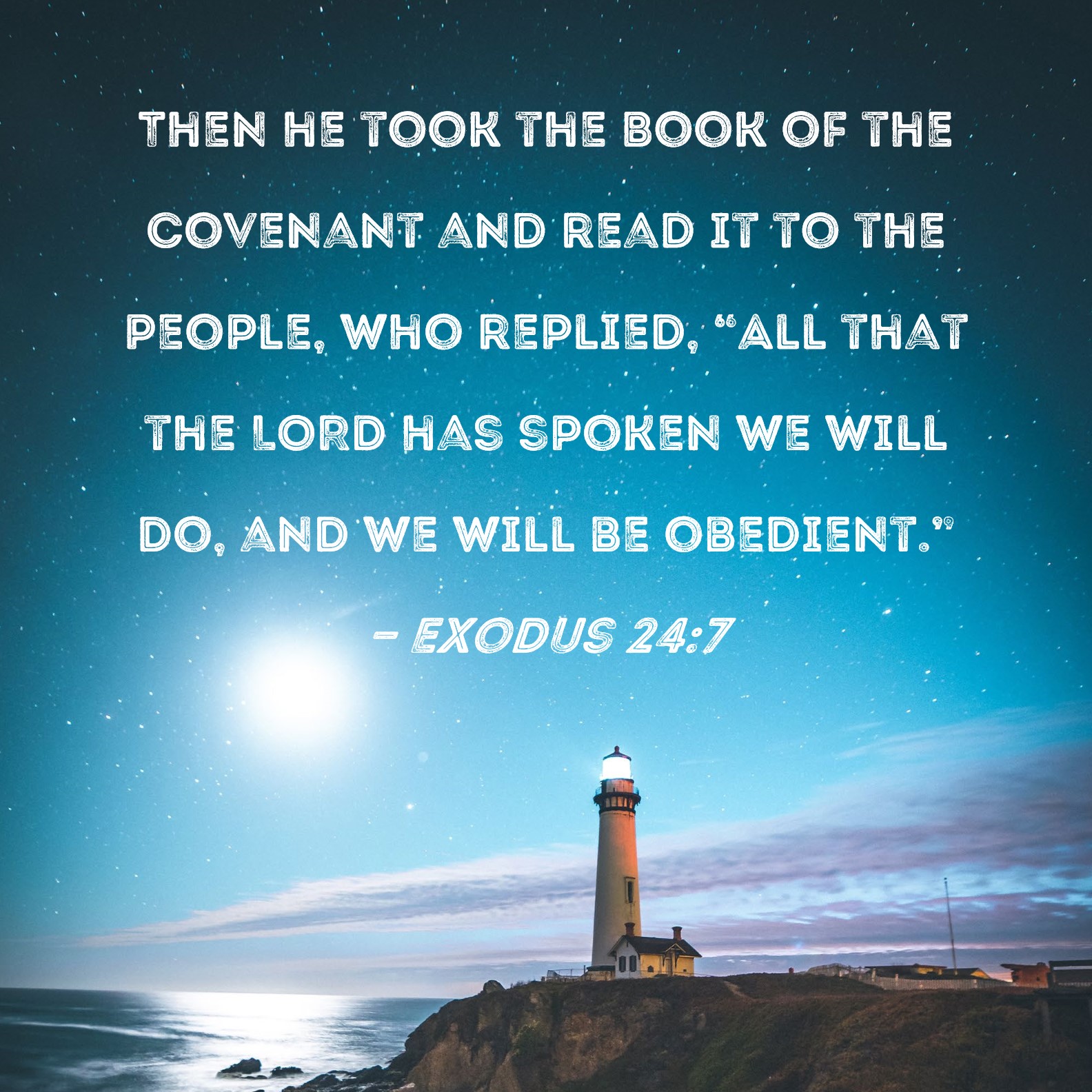 Exodus 24:7 Then he took the Book of the Covenant and read it to the people, who replied, "All that the LORD has spoken we will do, and we will be obedient."