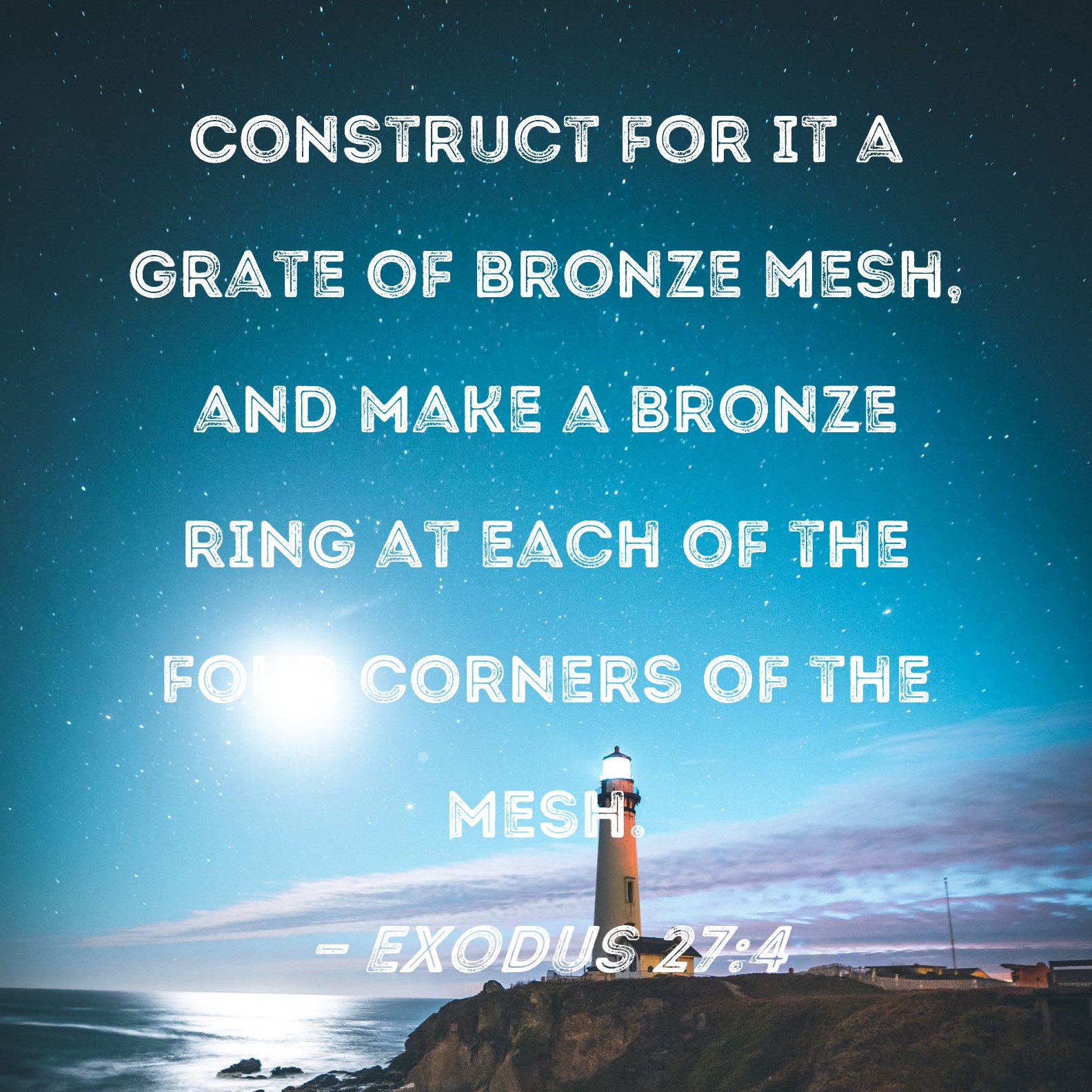 Exodus 27:4 Construct for it a grate of bronze mesh, and make a bronze ring at each of the four corners of the mesh.