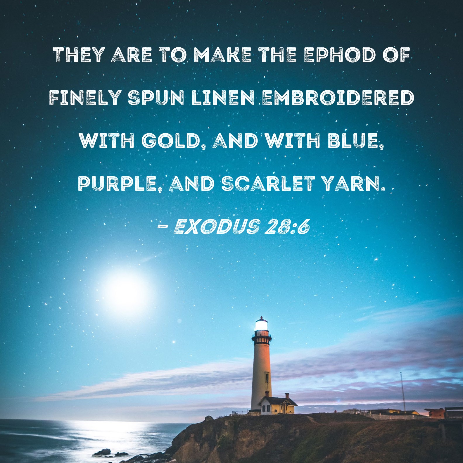 Exodus 28:6 They are to make the ephod of finely spun linen embroidered with gold, and with blue, purple, and scarlet yarn.