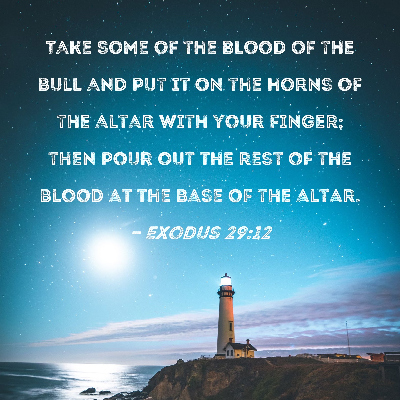 Exodus 29:12 Take some of the blood of the bull and put it on the horns of the altar with your finger; then pour out the rest of the blood at the base of the altar.