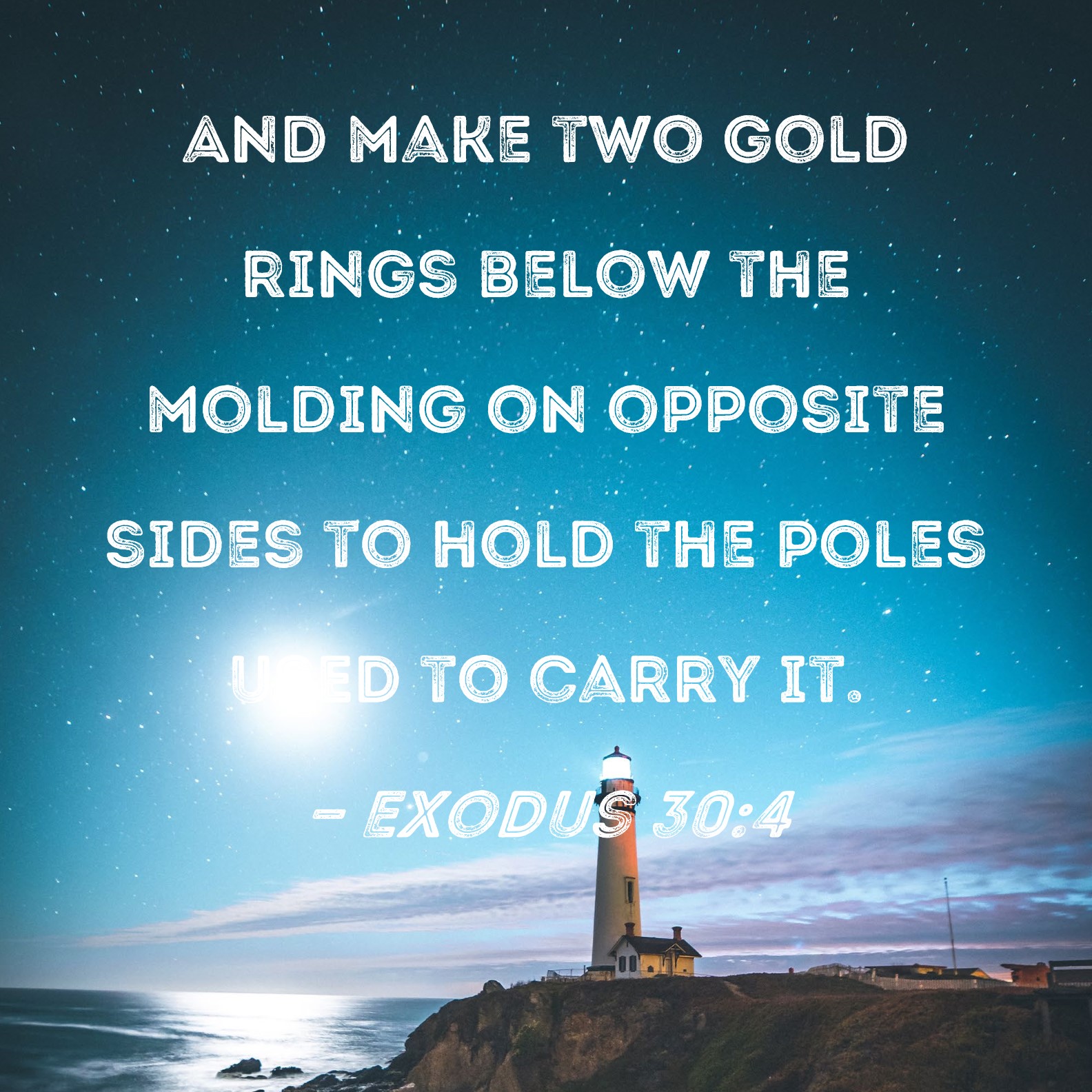 Exodus 30:4 And make two gold rings below the molding on opposite sides to hold the poles used to carry it.