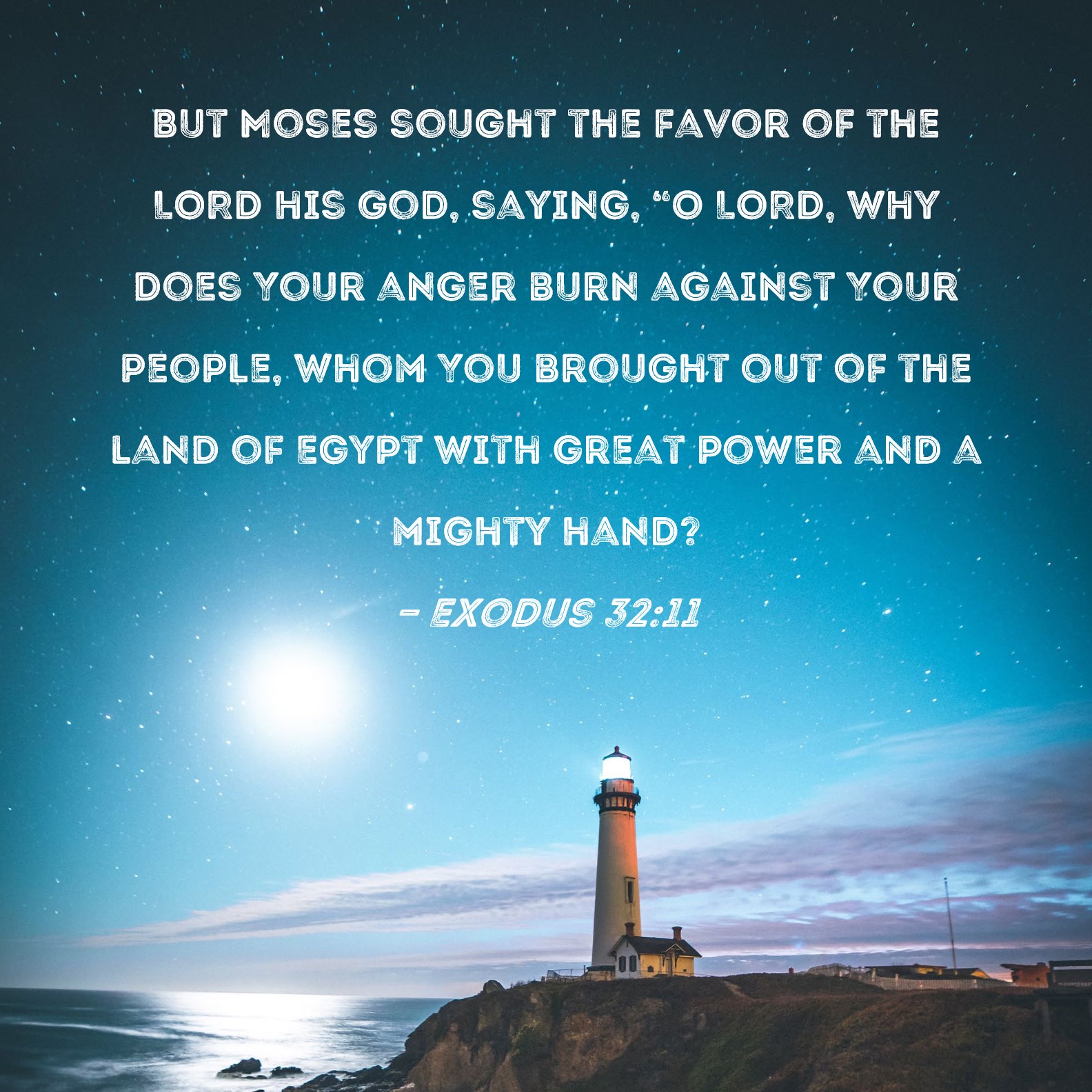 Exodus 32:11 But Moses sought the favor of the LORD his God, saying, "O LORD, why does Your anger burn against Your people, whom You brought out of the land of Egypt with great power and a mighty hand?
