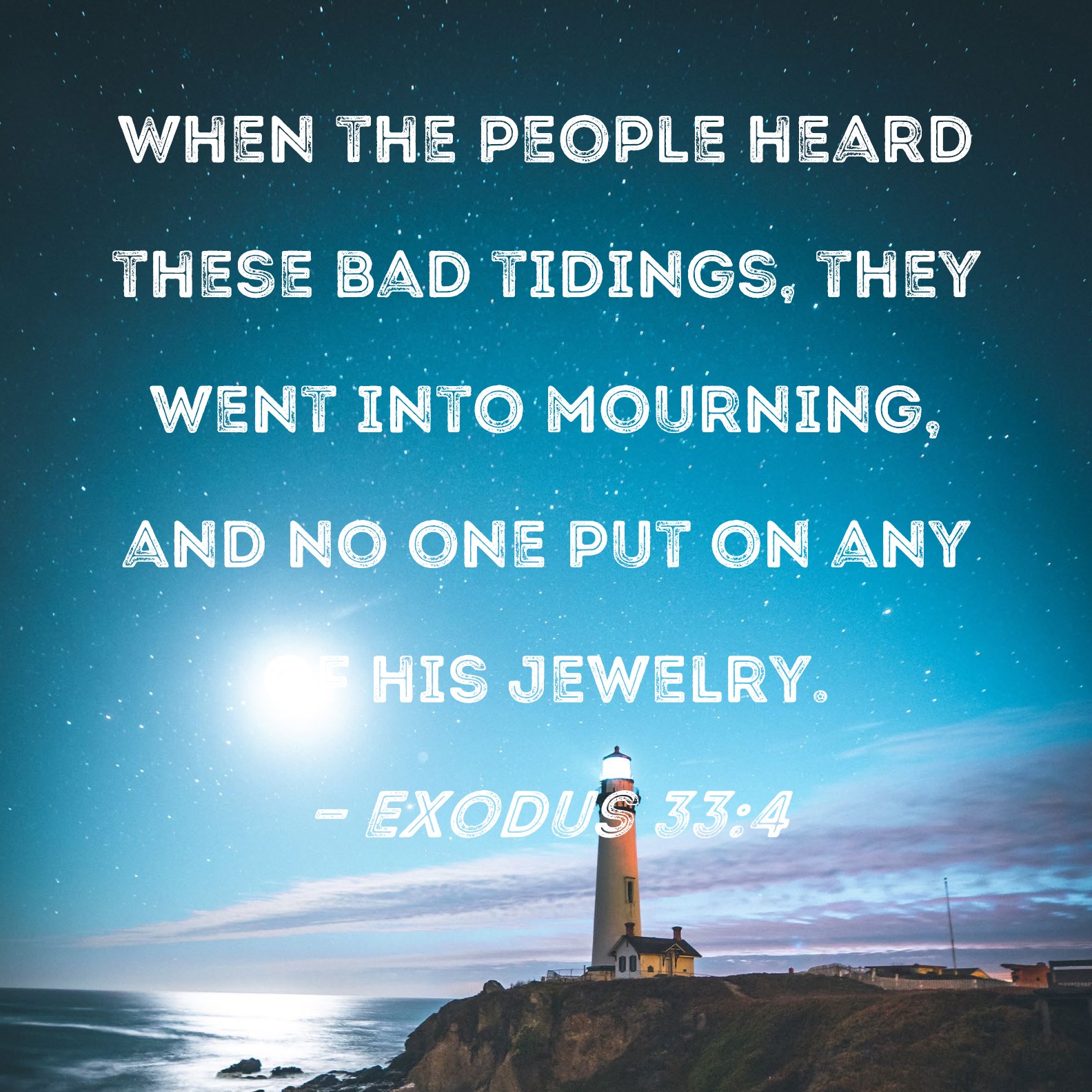 Exodus 33:4 When the people heard these bad tidings, they went into mourning, and no one put on any of his jewelry.