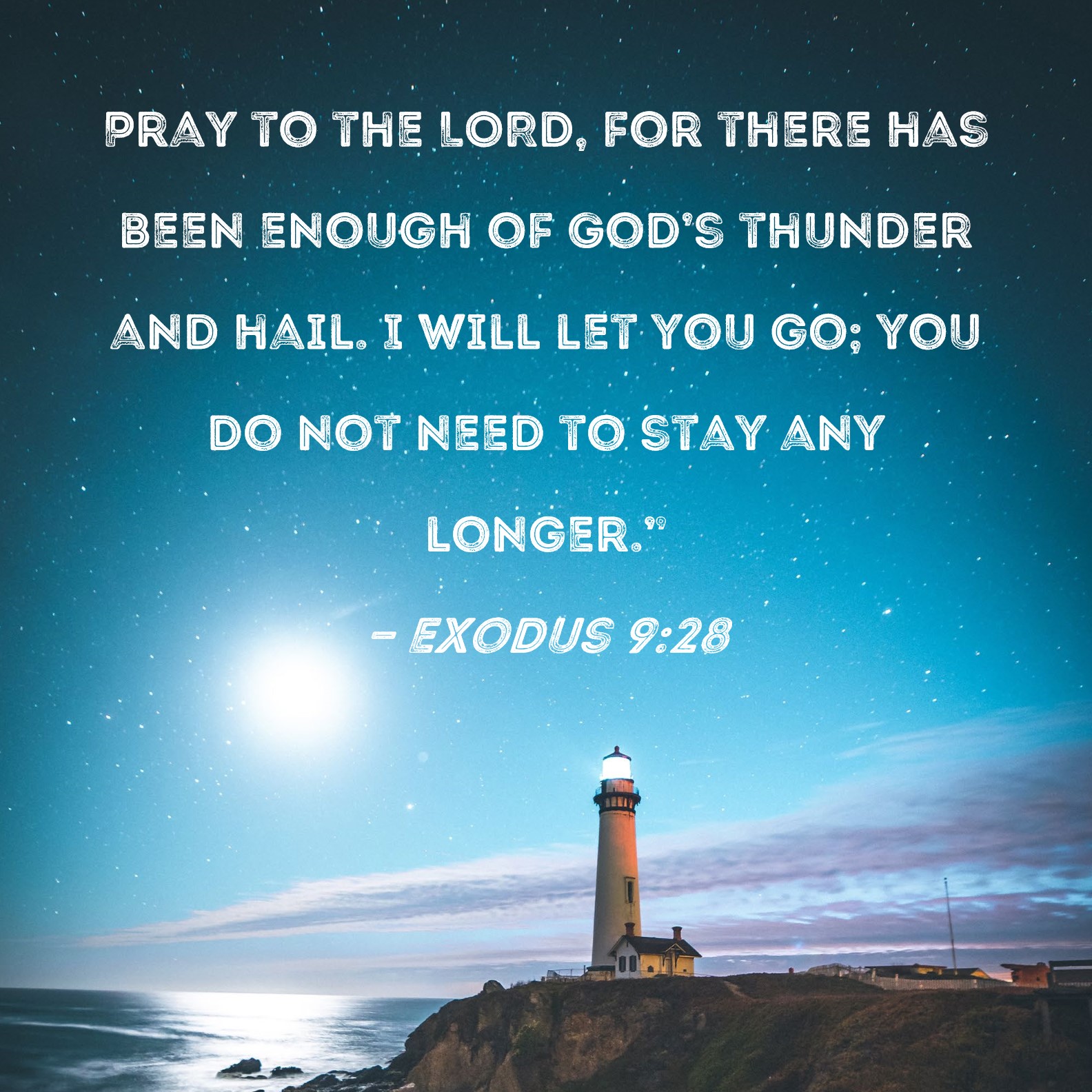 Exodus 9:28 Pray to the LORD, for there has been enough of God's thunder and hail. I will let you go; you do not need to stay any longer."
