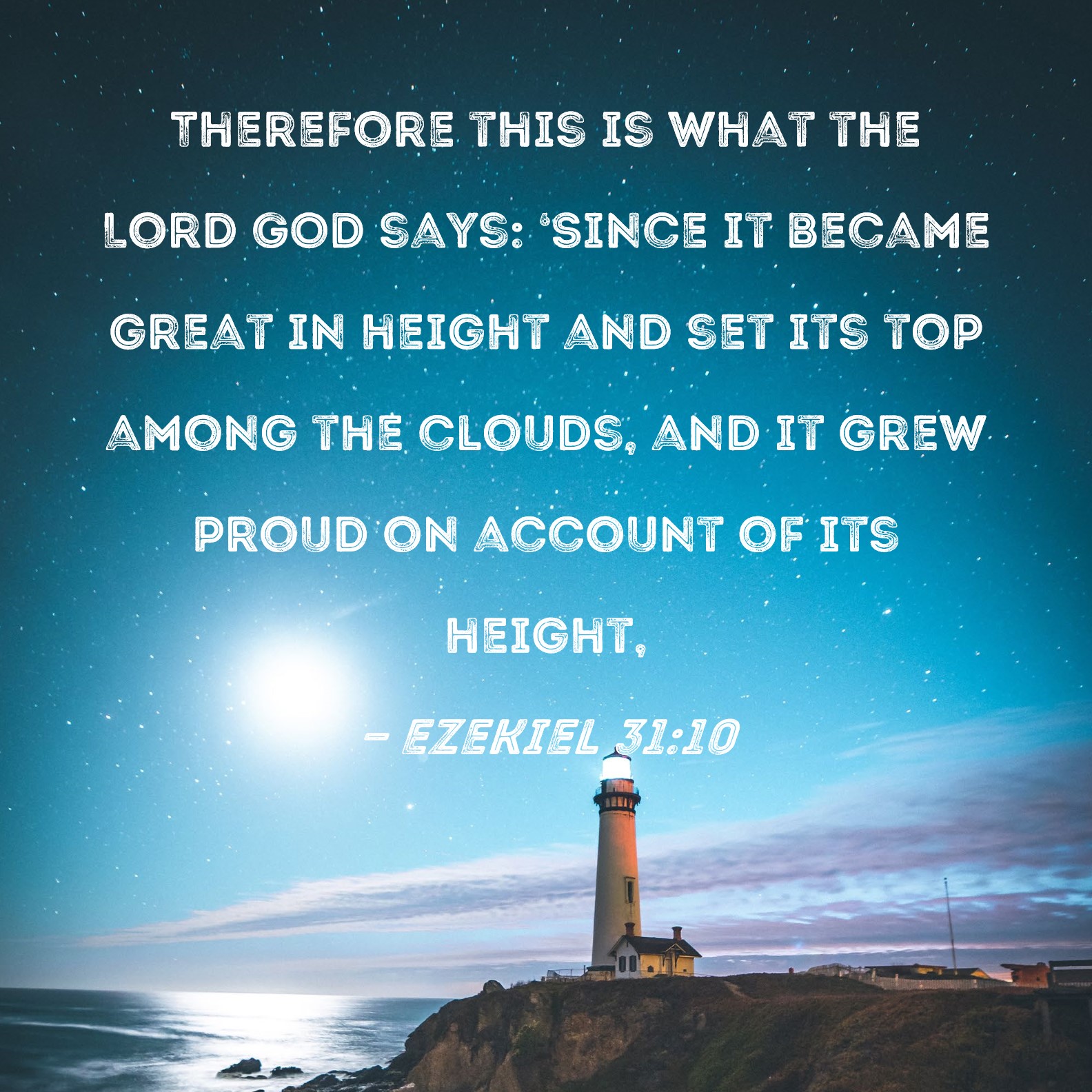 Ezekiel 31:10 Therefore this is what the Lord GOD says: 'Since it became great in height and set its top among the clouds, and it grew proud on account of its height,
