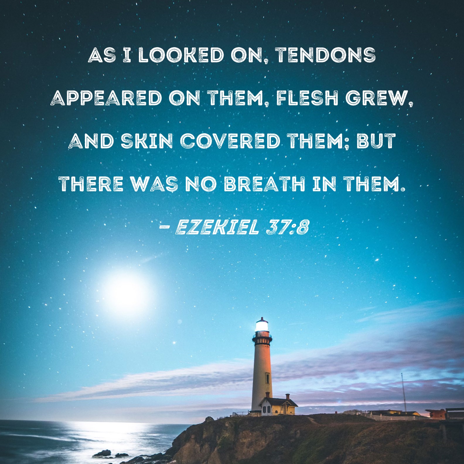 Ezekiel 37:8 As I looked on, tendons appeared on them, flesh grew, and skin covered them; but there was no breath in them.
