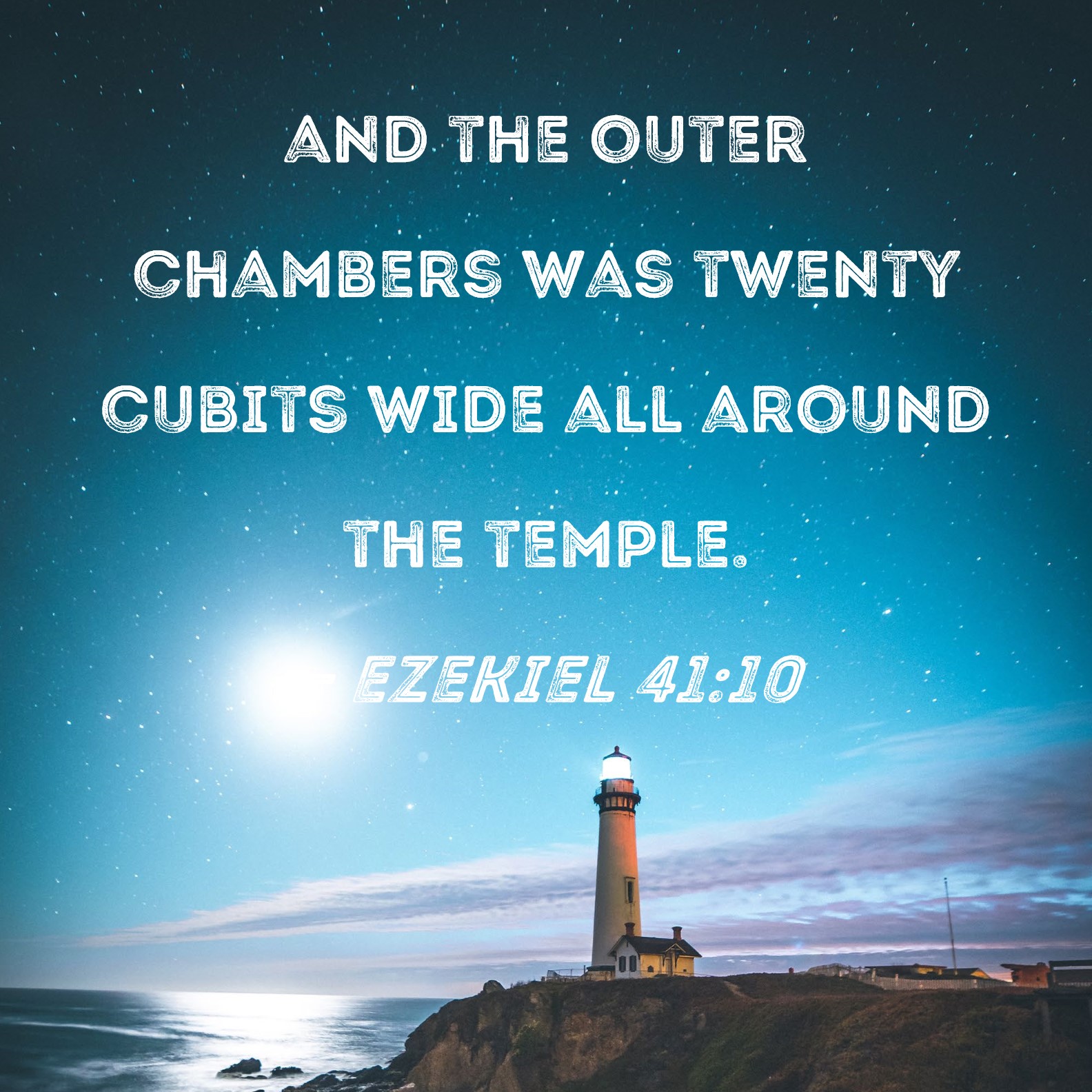 Ezekiel 41:10 and the outer chambers was twenty cubits wide all around the temple.