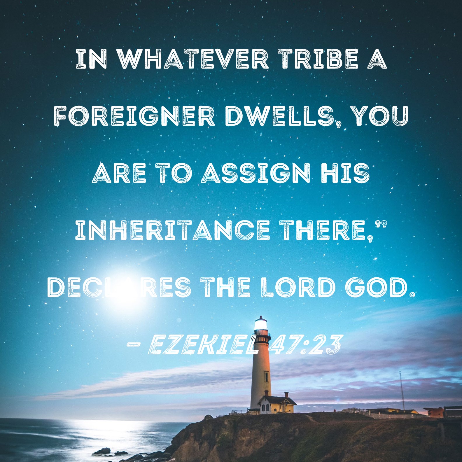 Ezekiel 47:23 In whatever tribe a foreigner dwells, you are to assign his inheritance there," declares the Lord GOD.