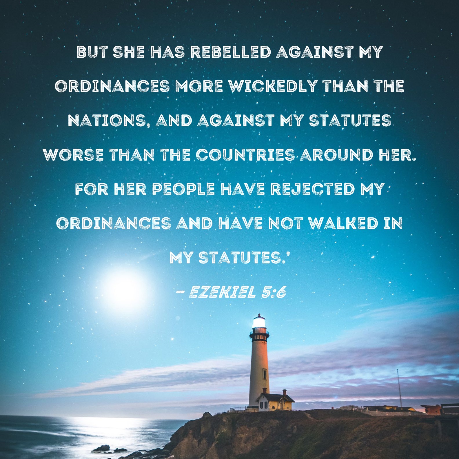 Ezekiel 5:6 But she has rebelled against My ordinances more wickedly than the nations, and against My statutes worse than the countries around her. For her people have rejected My ordinances and have not walked in My statutes.'