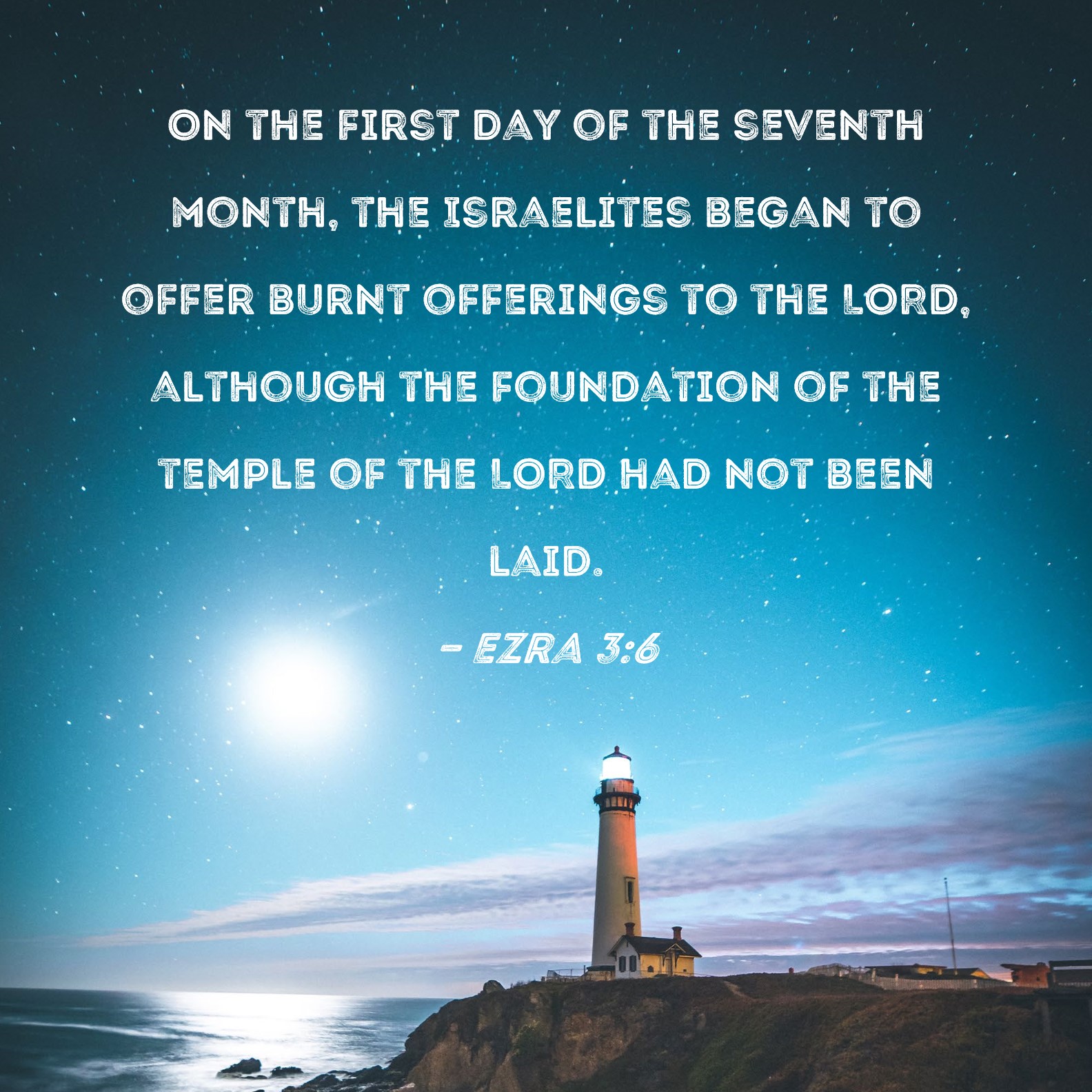 Ezra 3:6 On the first day of the seventh month, the Israelites began to offer burnt offerings to the LORD, although the foundation of the temple of the LORD had not been laid.