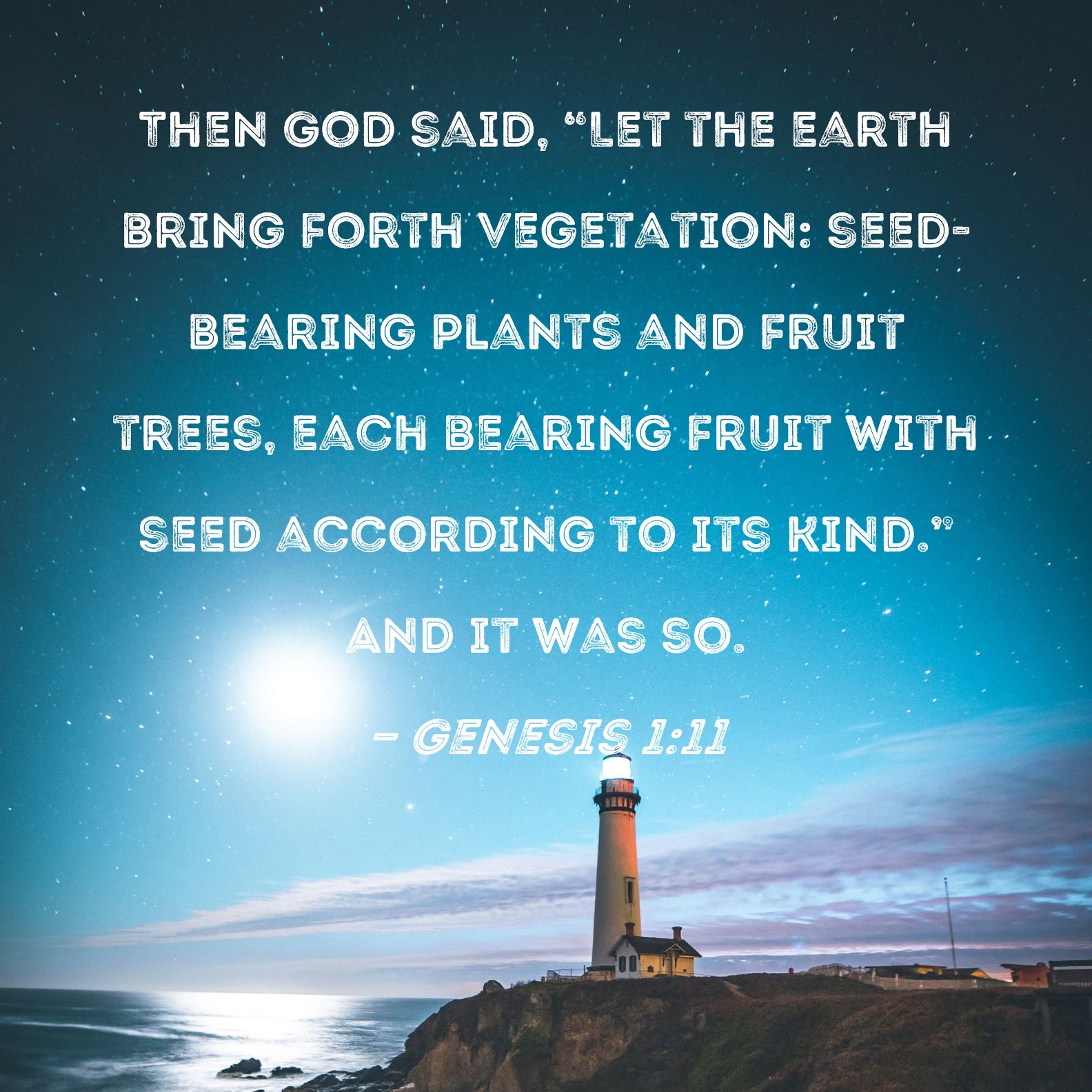 Genesis 1:11 Then God said, "Let the earth bring forth vegetation: seed-bearing plants and fruit trees, each bearing fruit with seed according to its kind." And it was so.