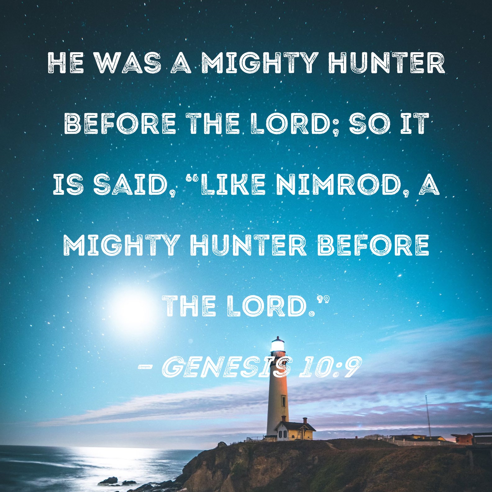 Genesis 10:9 He was a mighty hunter before the LORD; so it is said, "Like Nimrod, a mighty hunter before the LORD."