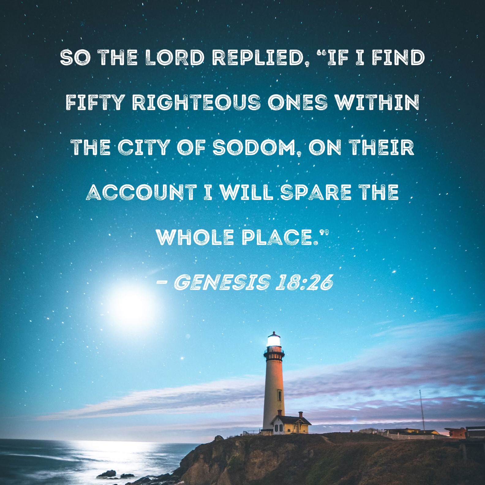 Genesis 18:26 So the LORD replied, "If I find fifty righteous ones within the city of Sodom, on their account I will spare the whole place."