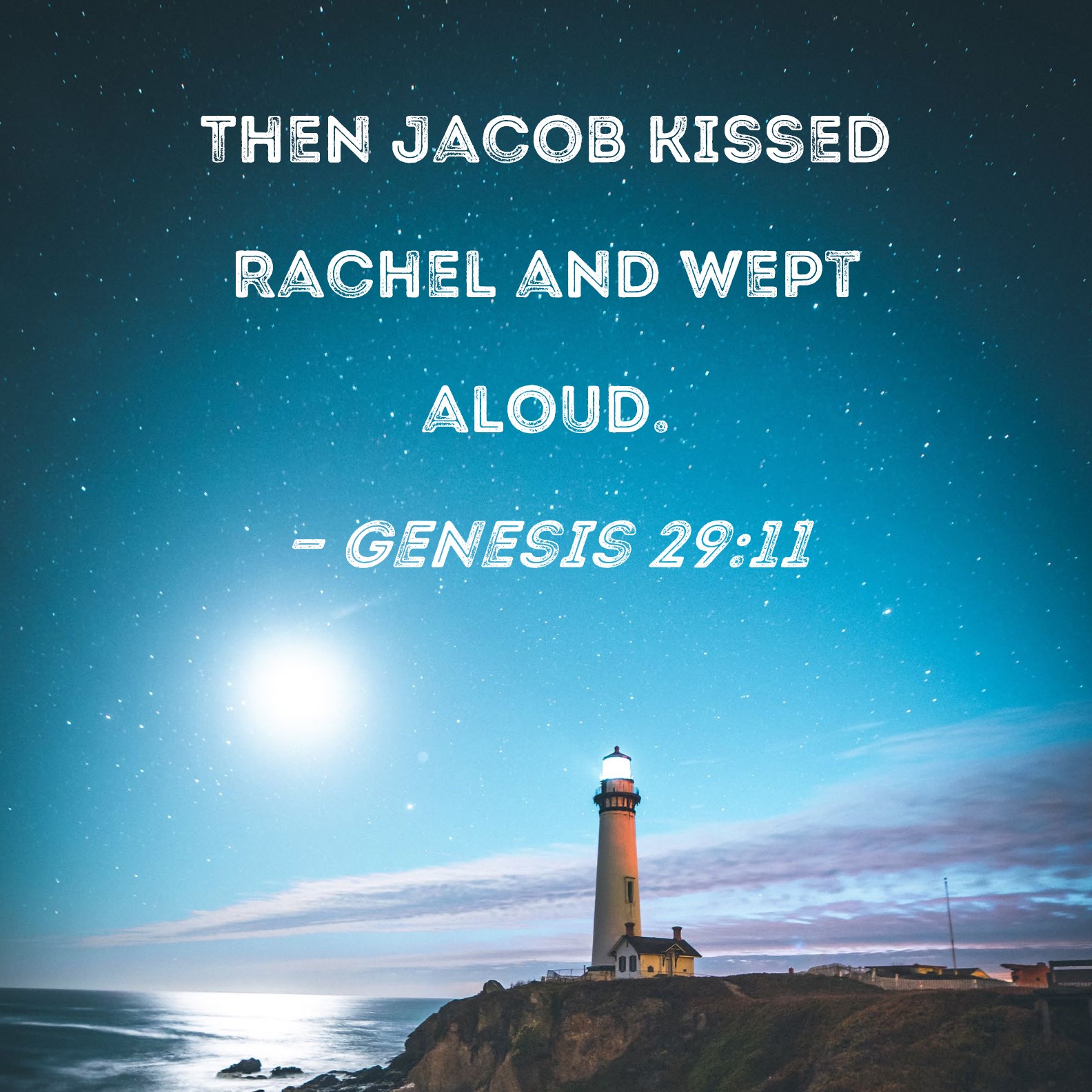 Genesis 29:11 Then Jacob kissed Rachel and wept aloud.