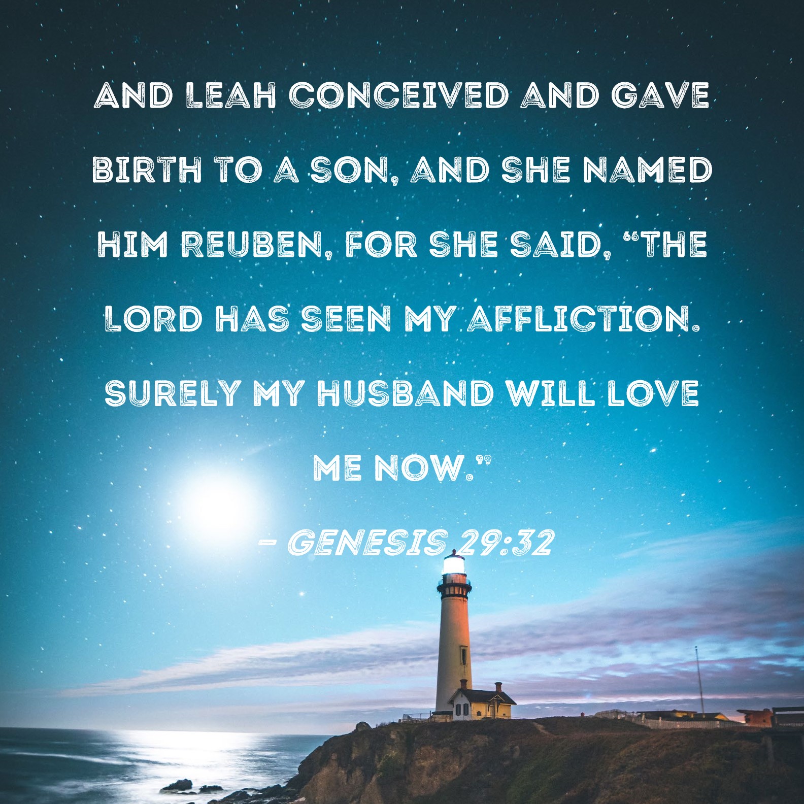 Genesis 29:32 And Leah conceived and gave birth to a son, and she named him Reuben, for she said, "The LORD has seen my affliction. Surely my husband will love me now."
