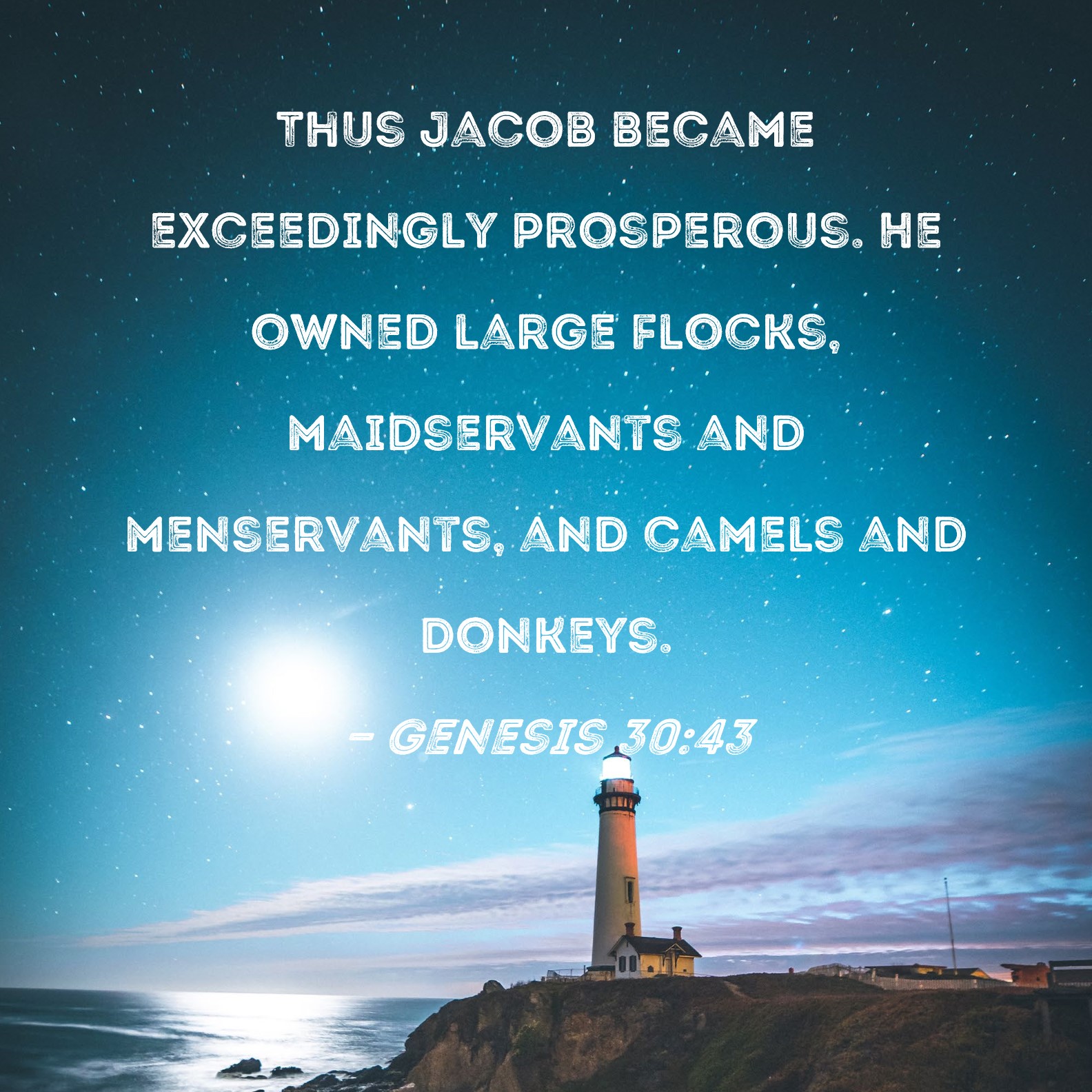Genesis 30:43 Thus Jacob became exceedingly prosperous. He owned large flocks, maidservants and menservants, and camels and donkeys.