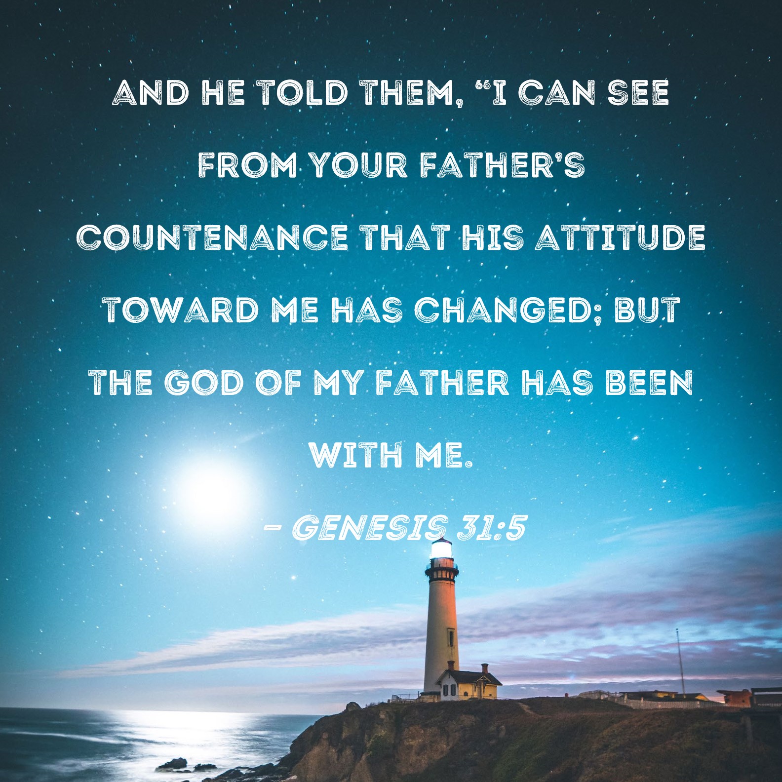 Genesis 31:5 and he told them, "I can see from your father's countenance that his attitude toward me has changed; but the God of my father has been with me.