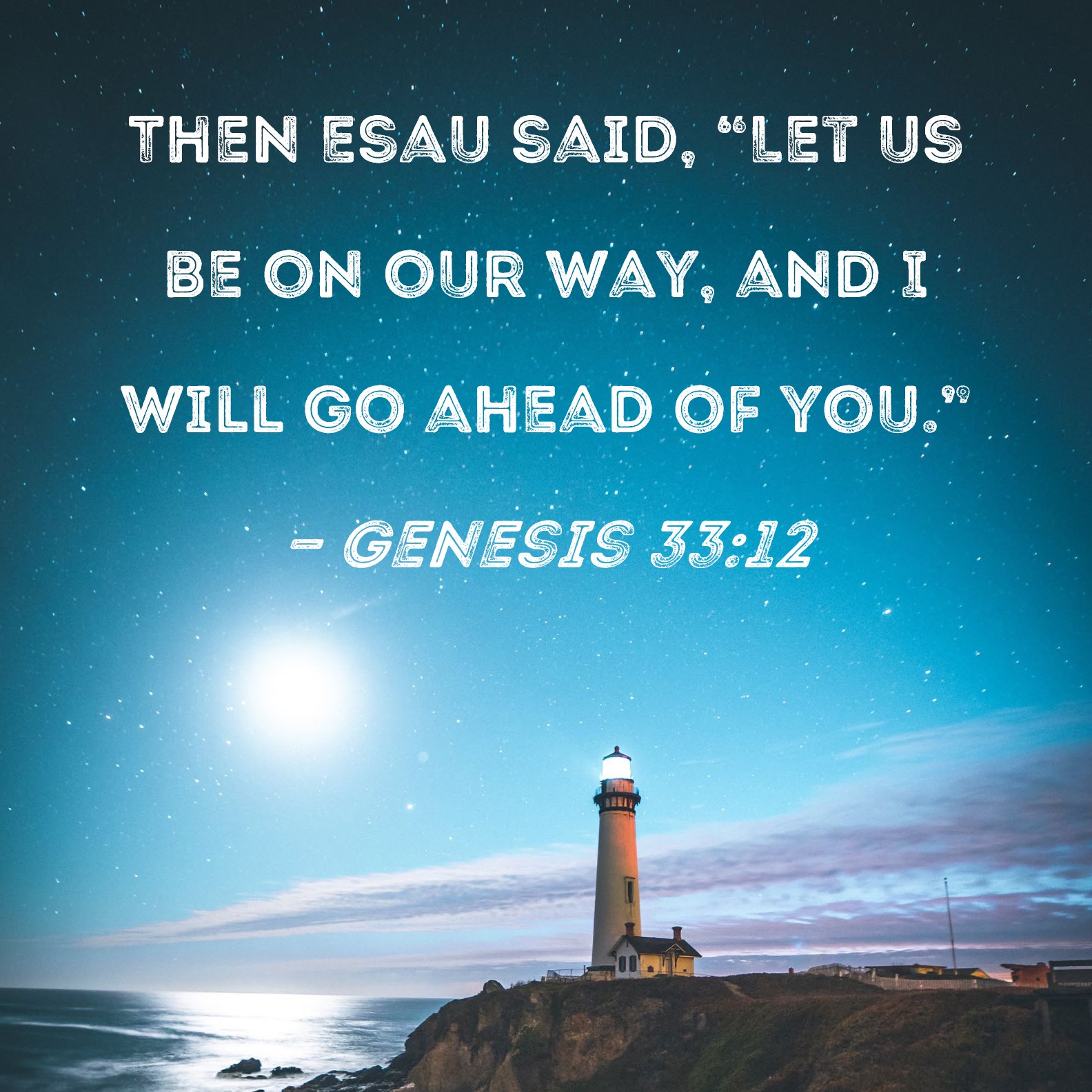 Genesis 33:12 Then Esau said, "Let us be on our way, and I will go ahead of you."