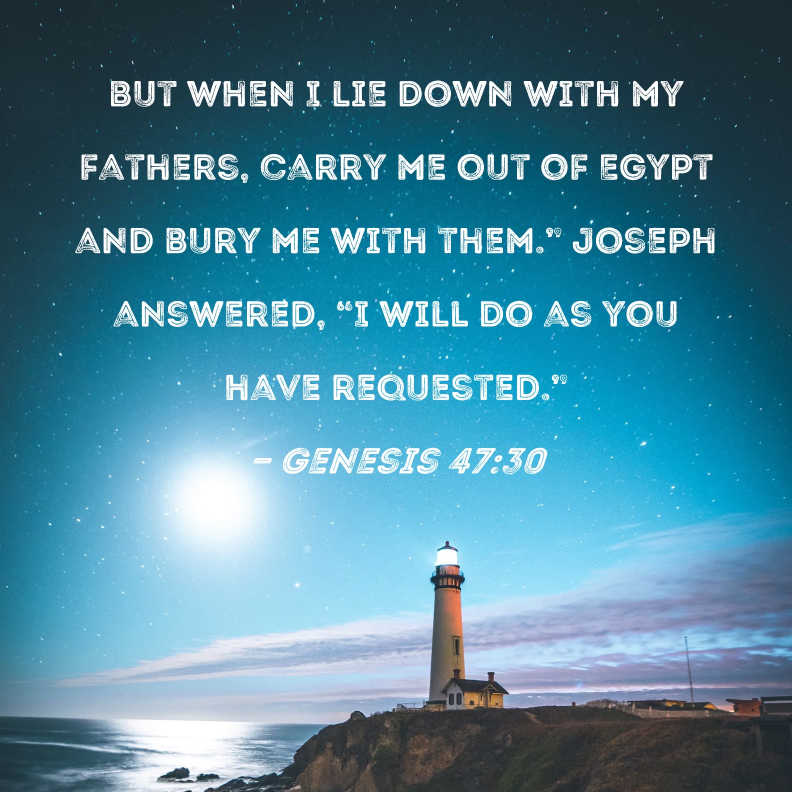 Genesis 47:30 but when I lie down with my fathers, carry me out of Egypt and bury me with them." Joseph answered, "I will do as you have requested."