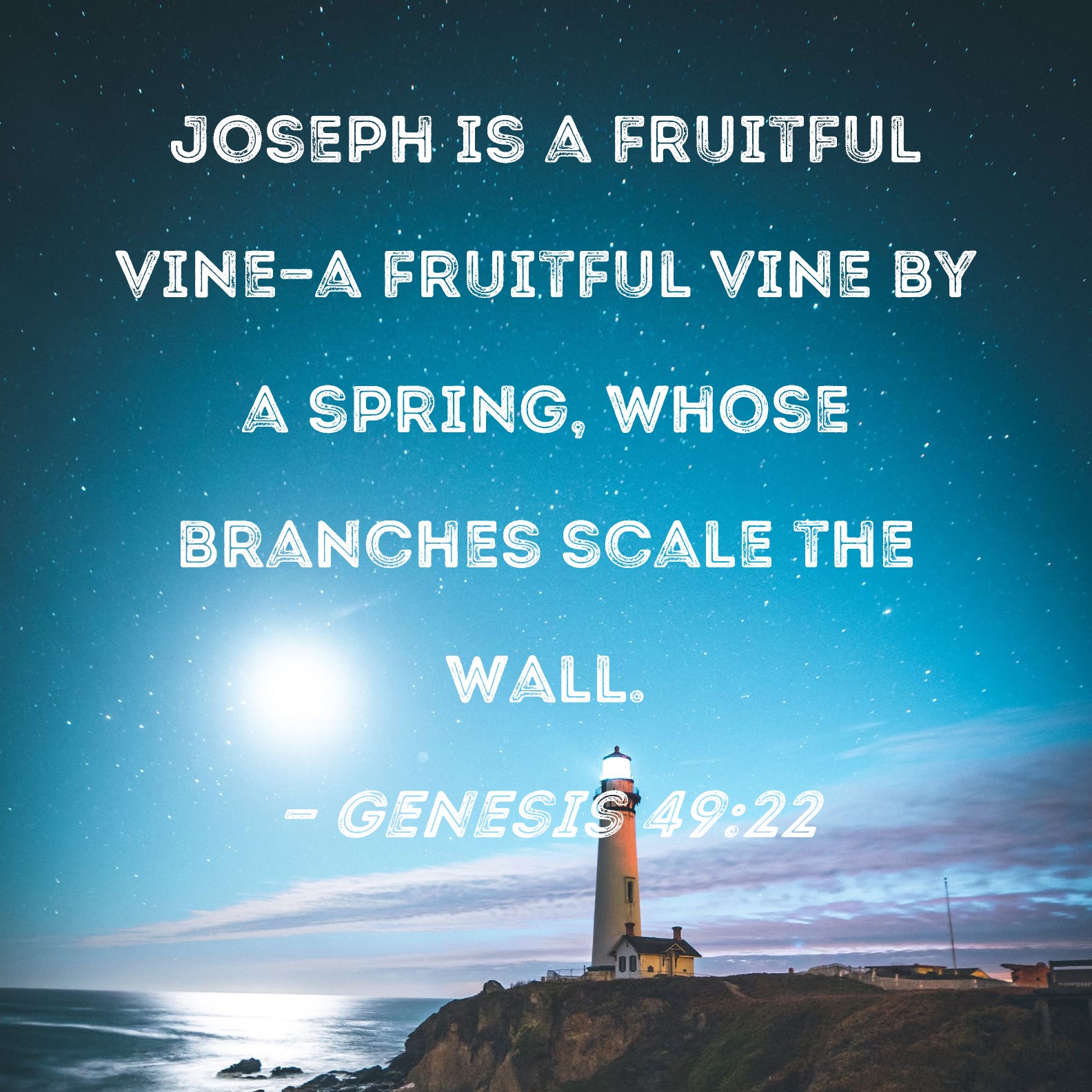 Genesis 49:22 Joseph is a fruitful vine--a fruitful vine by a spring, whose branches scale the wall.