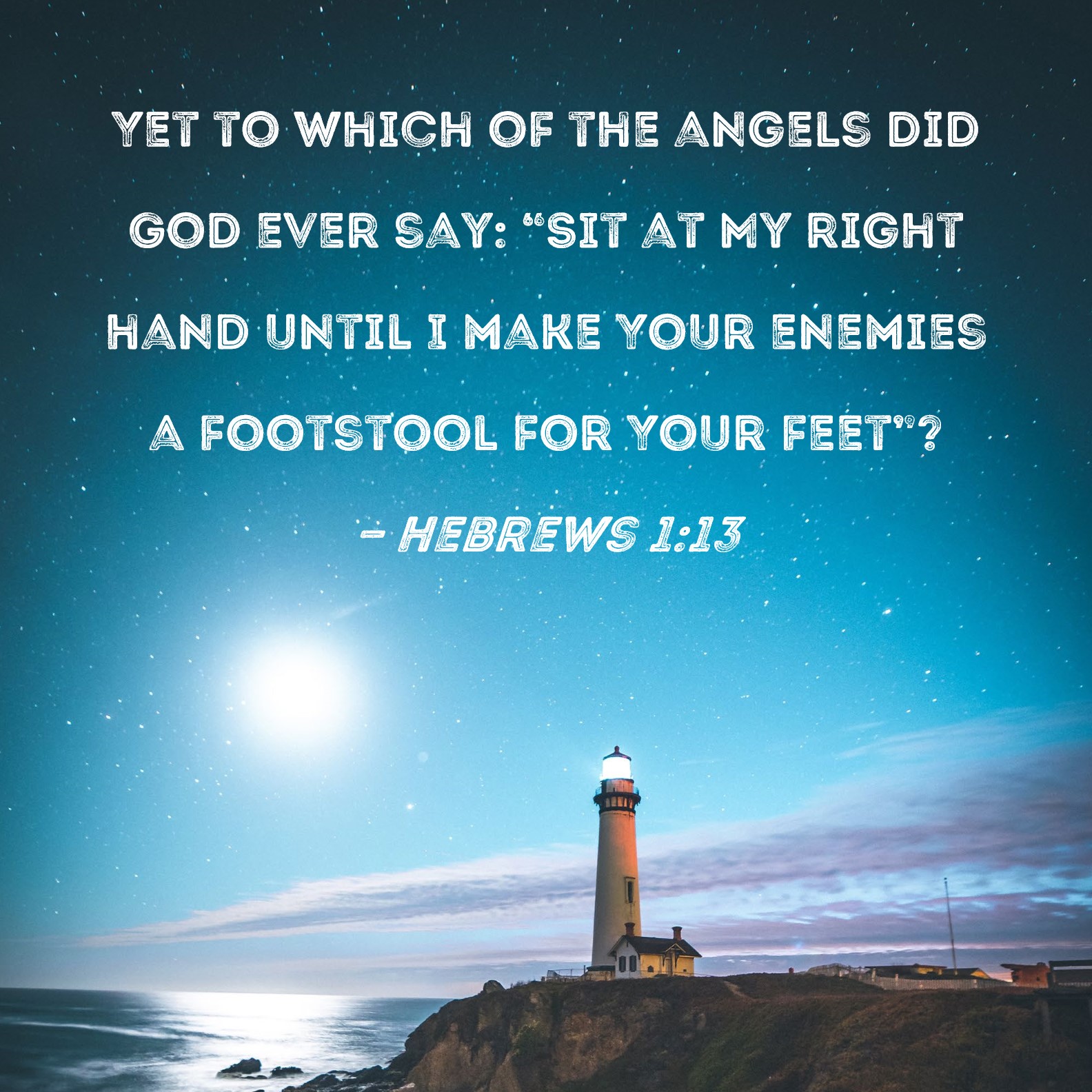 Hebrews 1:13 Yet to which of the angels did God ever say: "Sit at My right hand until I make Your enemies a footstool for Your feet"?