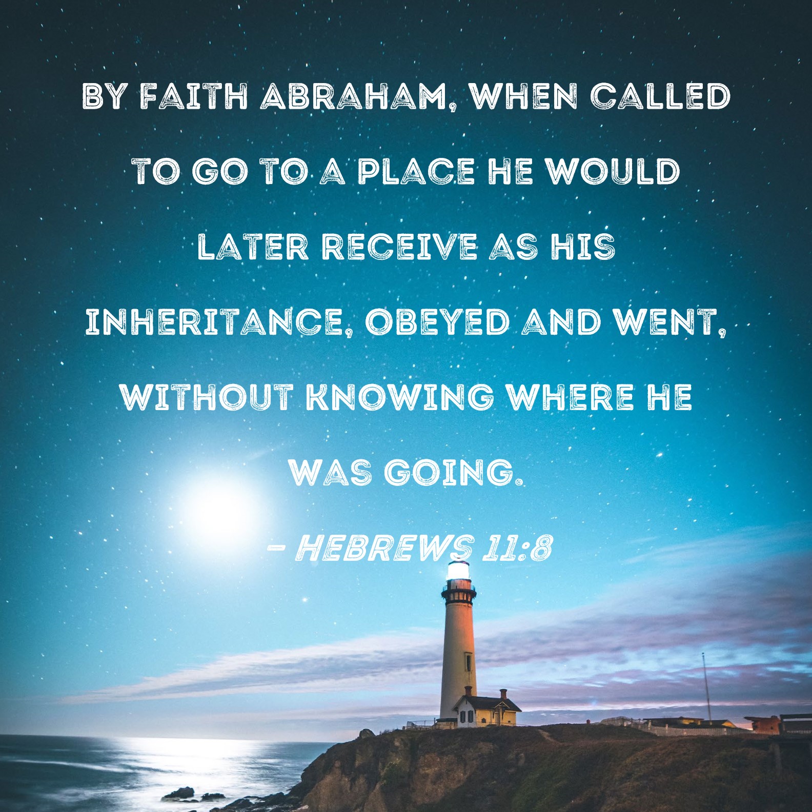 Hebrews 11:8 By faith Abraham, when called to go to a place he would later receive as his inheritance, obeyed and went, without knowing where he was going.