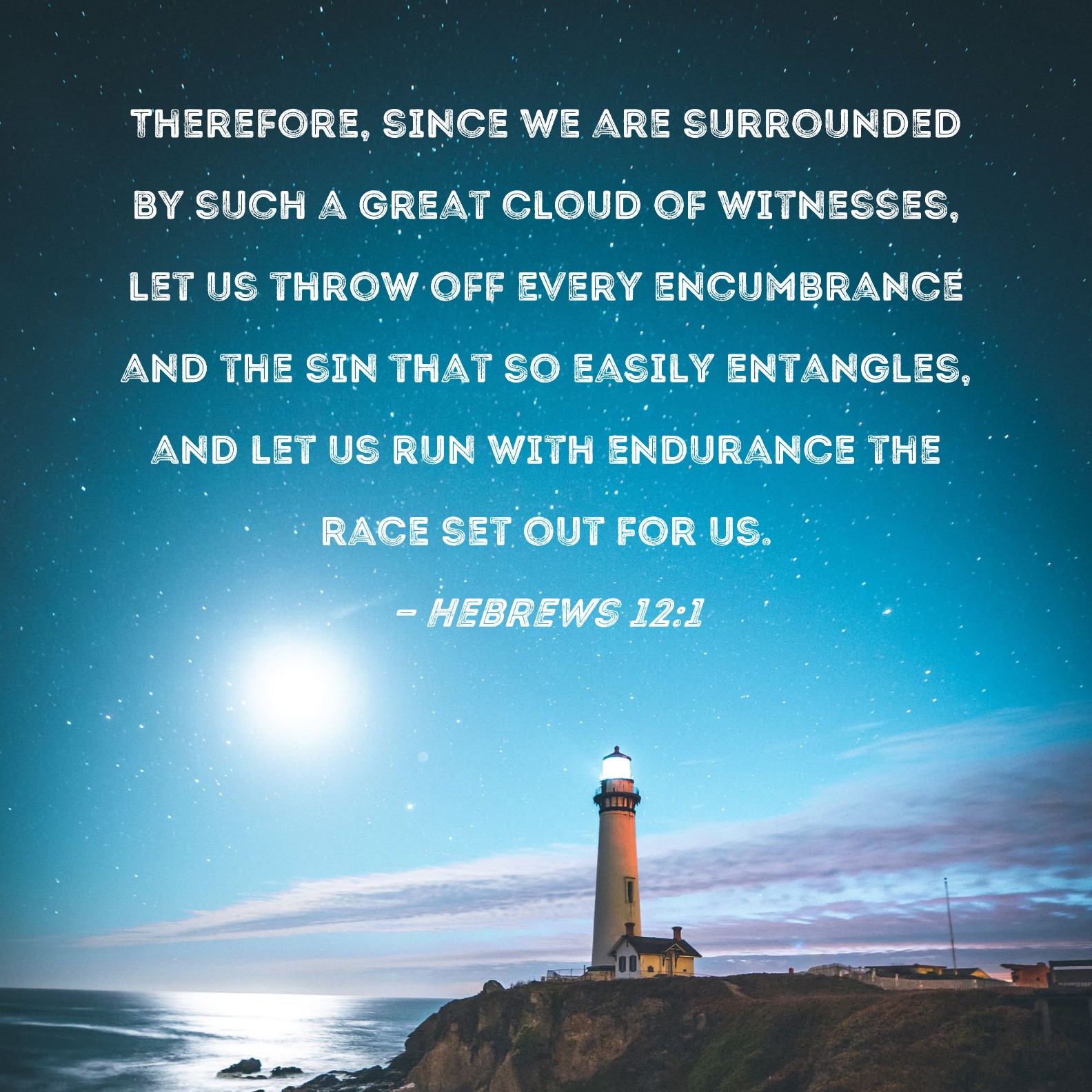Hebrews 12:1 Therefore, since we are surrounded by such a great cloud of witnesses, let us throw off every encumbrance and the sin that so easily entangles, and let us run with endurance the race set out for us.