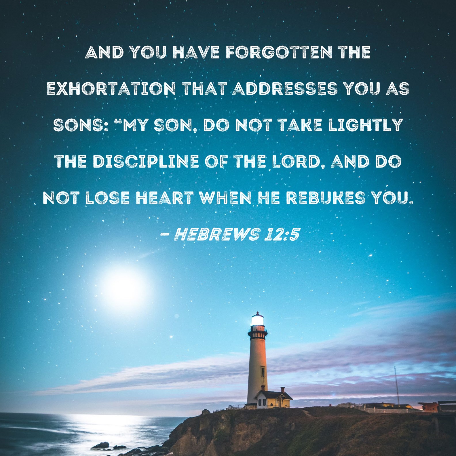 Hebrews 12:5 And you have forgotten the exhortation that addresses you as sons: "My son, do not take lightly the discipline of the Lord, and do not lose heart when He rebukes you.