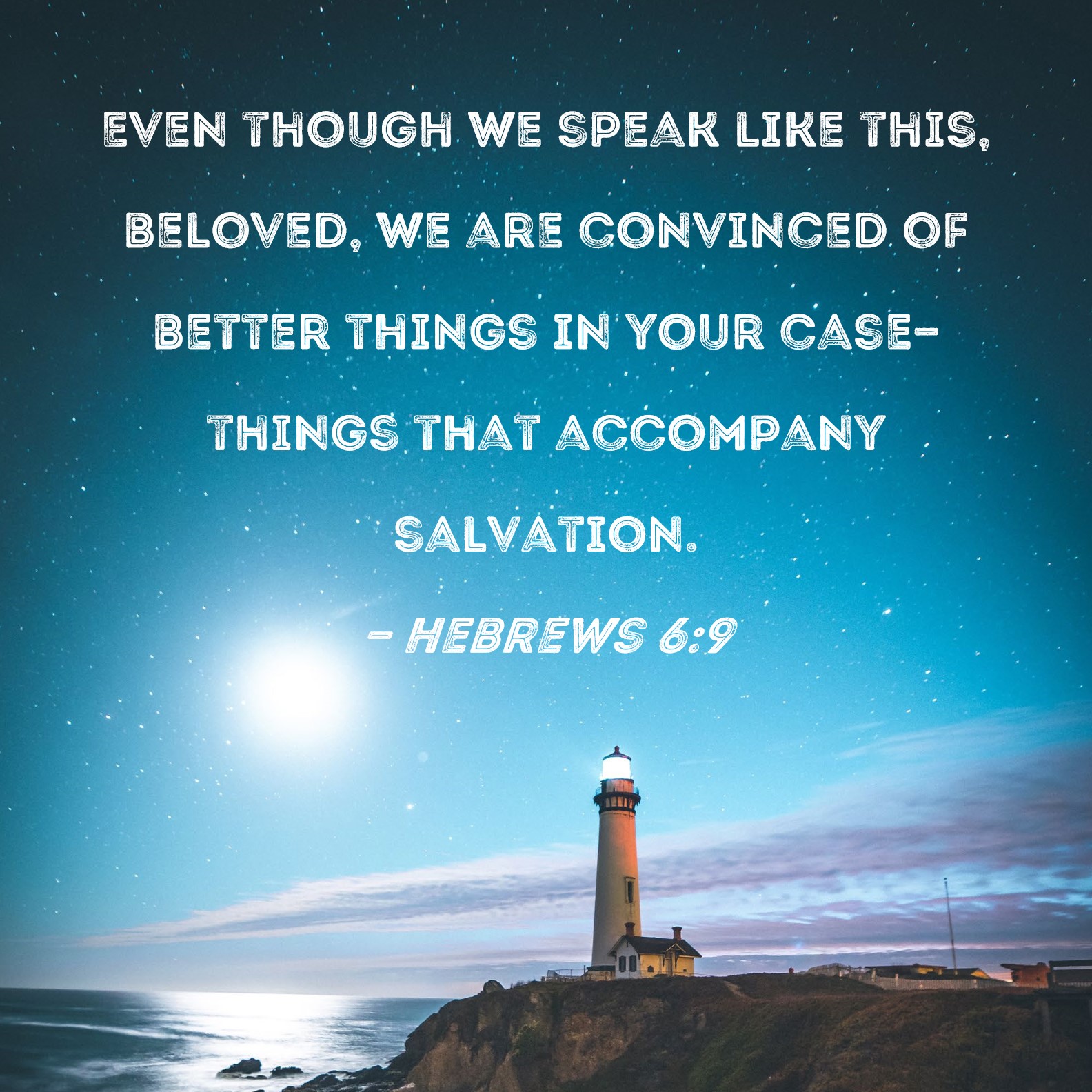 Hebrews 6:9 Even though we speak like this, beloved, we are convinced of better things in your case--things that accompany salvation.