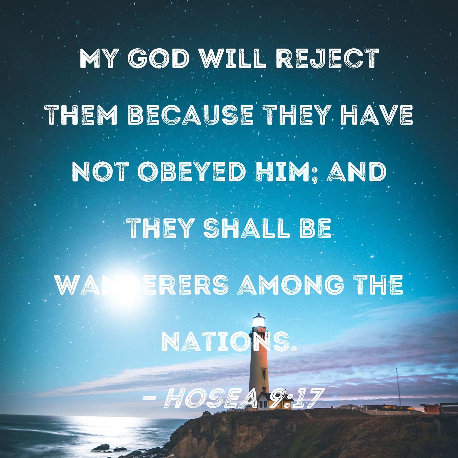 Hosea 9:17 My God will reject them because they have not obeyed Him; and they shall be wanderers among the nations.