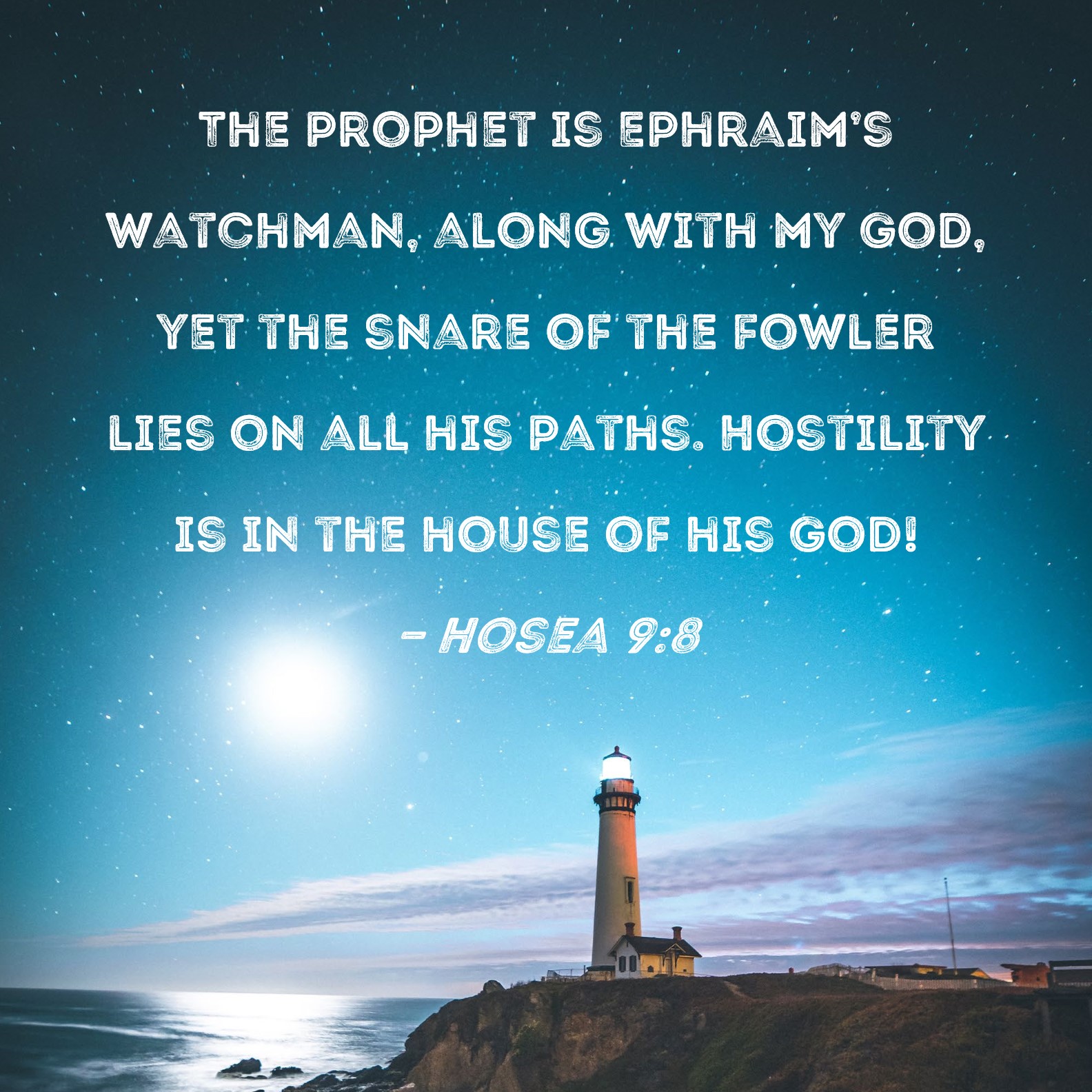Hosea 9:8 The prophet is Ephraim's watchman, along with my God, yet the snare of the fowler lies on all his paths. Hostility is in the house of his God!