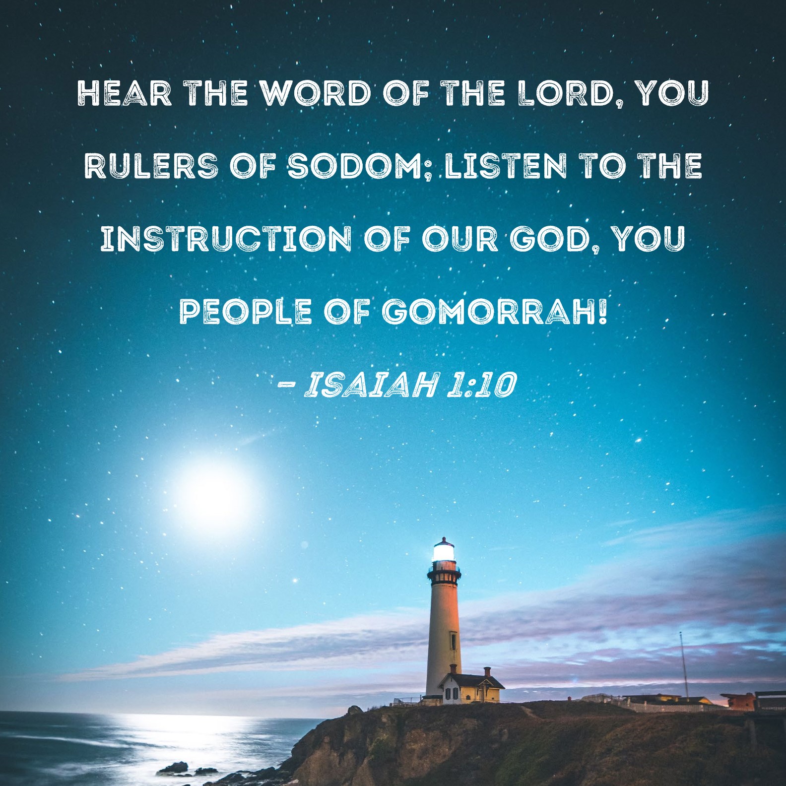Isaiah 1:10 Hear the word of the LORD, you rulers of Sodom; listen to the instruction of our God, you people of Gomorrah!