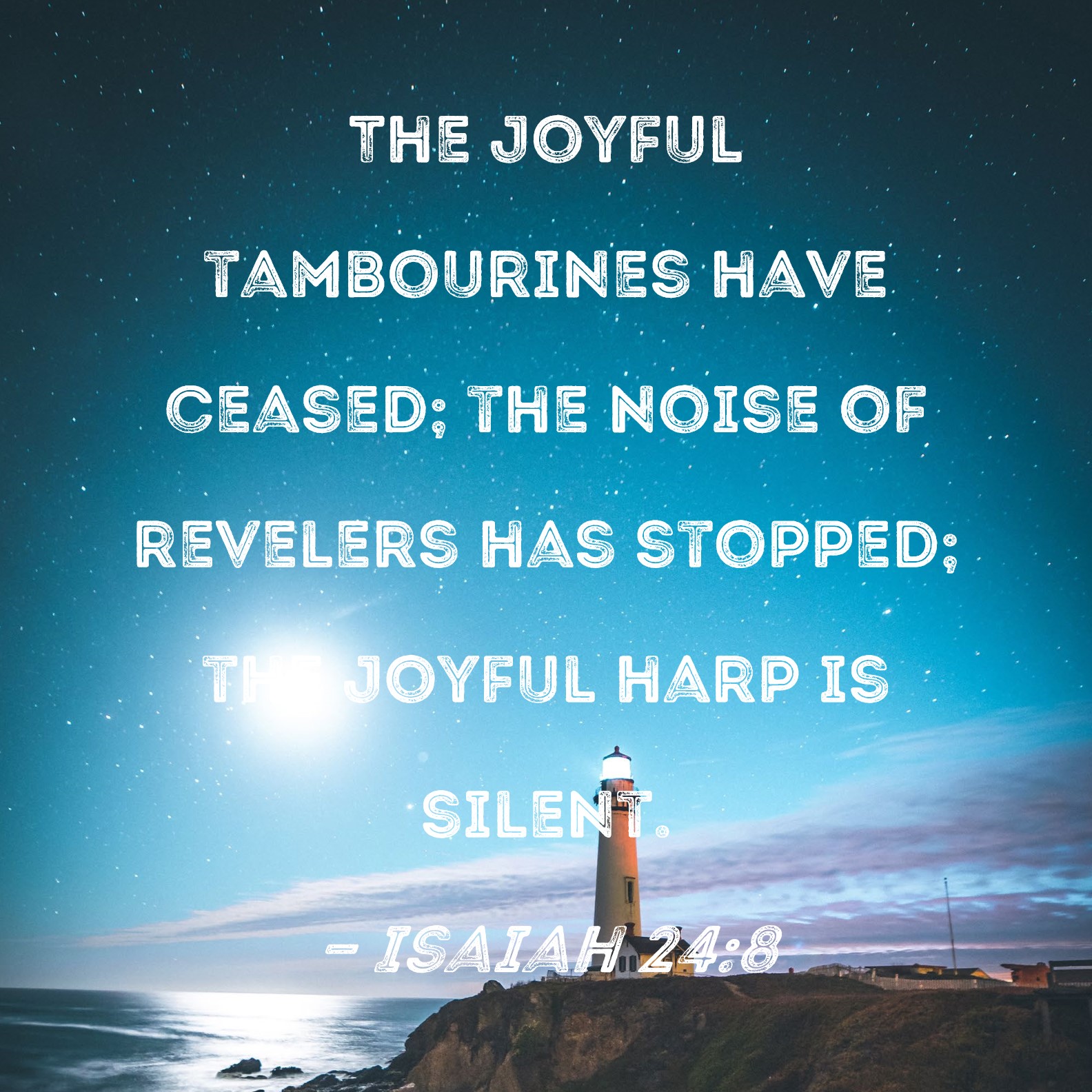 Isaiah 24:8 The joyful tambourines have ceased; the noise of revelers has stopped; the joyful harp is silent.