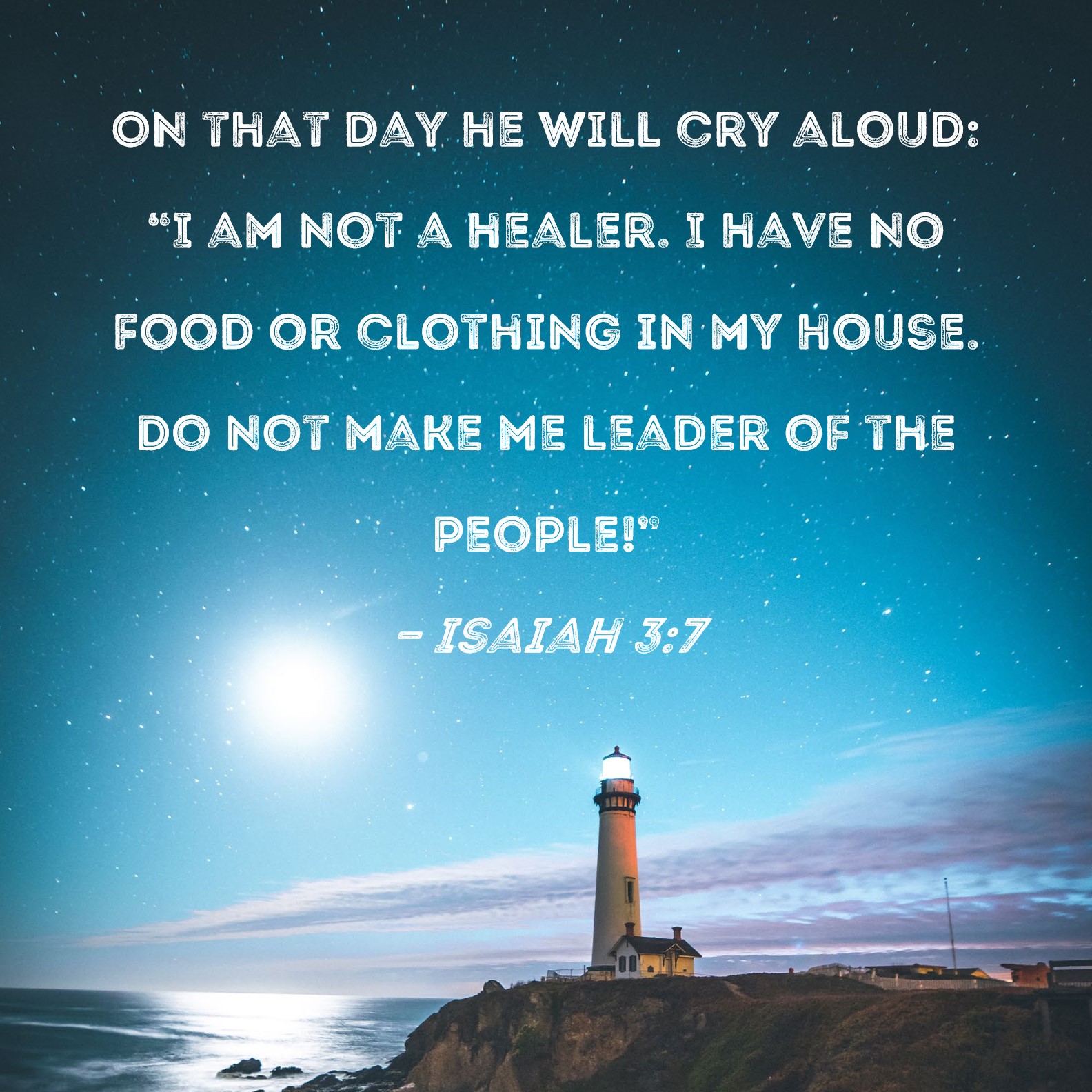 Isaiah 3:7 On that day he will cry aloud: "I am not a healer. I have no food or clothing in my house. Do not make me leader of the people!"